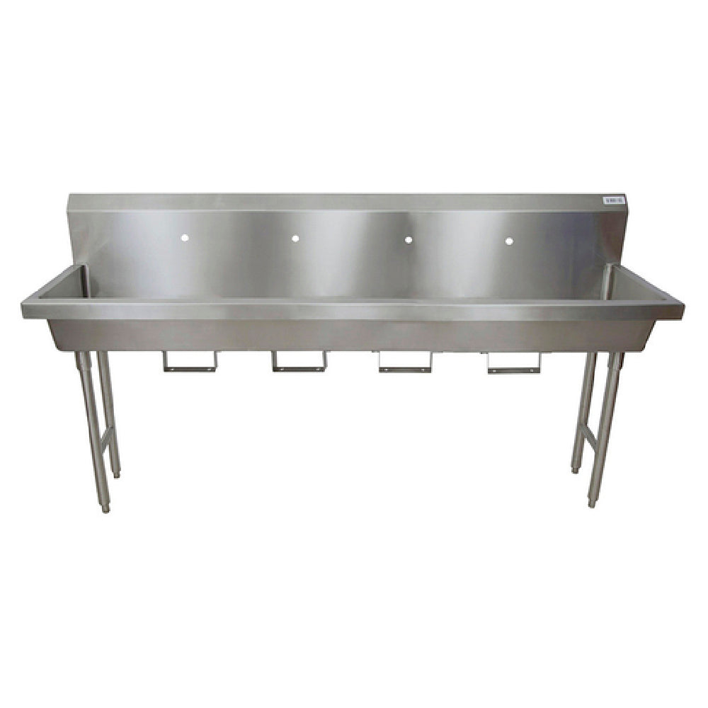 BK Resources MSHS-96F1B Four Station Handwash Sink Freestanding (4) Single Hole Splash Mount Faucet Holes