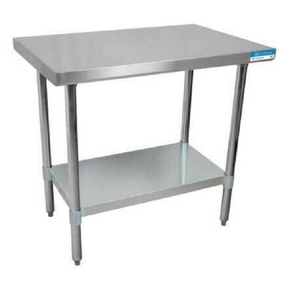 BK Resources QTT-7236 Work Table 72"W X 36"D X 34-3/4"H 14/304 Stainless Steel Top Reinforced With (3) 5" C Channels