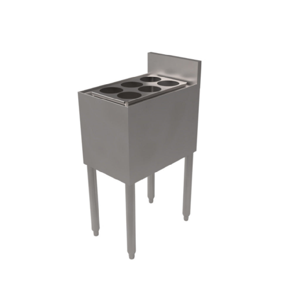The BK Resources UB-18-IBO-6 Ice Bin Bottle Organizer is specifically engineered for seamless integration with 12-inch ice bins, enhancing functionality and organization in commercial settings. With its top section measuring 8-3/4 inches by 15-1/2 inches by 1/2 inch in height, and a bottom section of 7-5/16 inches by 14 inches by 6-1/2 inches in height, this organizer is designed for precision and efficiency. Made from durable 18/304 stainless steel construction, it ensures longevity and resistance to corrosion, making it a reliable component in demanding environments. The unique separate well feature is designed to keep bottles chilled while ensuring the ice remains clean, an essential advantage for businesses in the hospitality industry such as bars and restaurants where hygiene and quick access to cold beverages are crucial. This product's meticulous design makes it a valued addition to any operation seeking to optimize their ice storage areas, providing both increased efficiency and improved aesthetic organization. The BK Resources UB-18-IBO-6 combines structural integrity with practical functionality, making it an indispensable tool for any facility looking to maintain high standards of service and customer satisfaction.