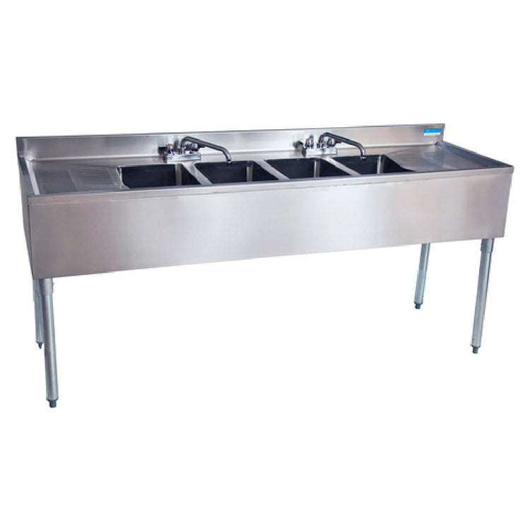 BK Resources UB4-18-484TS Slim-Line Underbar Sink Four Compartment 84”W X 18-1/4"D X 32-1/2"H Overall Size