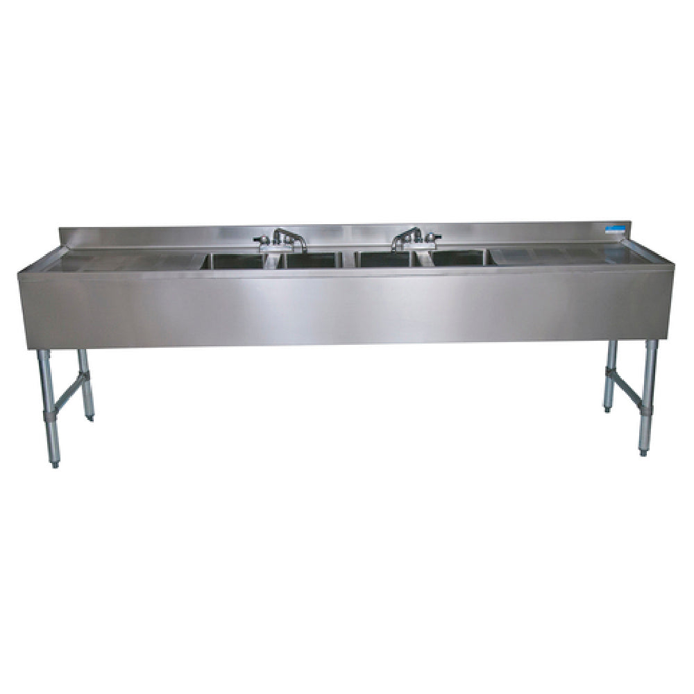 BK Resources UB4-18-496TS Slim-Line Underbar Sink Four Compartment 96”W X 18-1/4"D X 32-1/2"H Overall Size