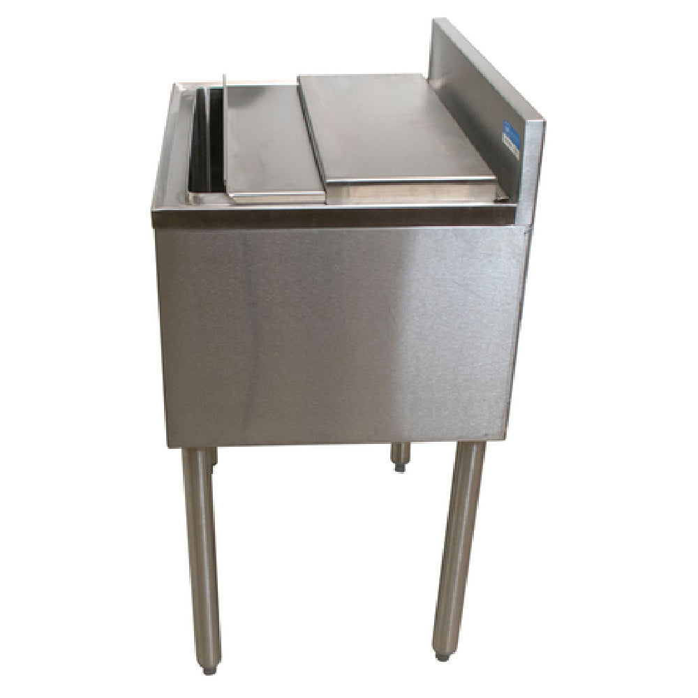 The BK Resources UB4-18-IBCP36-10 Underbar Ice Bin With 10-circuit Aluminum Cold Plate is engineered to meet the diverse needs of the hospitality and food service industries. This underbar ice bin boasts a substantial 100 lbs capacity, providing ample space for ice storage and ensuring efficient service during peak demand. Measuring 31 inches wide, 15 inches front-to-back, and 12-9/16 inches deep, the ice bin is compact yet spacious, ideal for optimizing underbar space. The 4-inch high backsplash is designed to protect surrounding areas from spills, maintaining cleanliness and order in the work environment. Constructed from 18/304 stainless steel, the bin offers exceptional durability and resistance to corrosion, ensuring long-lasting performance. The stainless steel legs and side bracing provide robust support, while the adjustable corrosion-resistant feet enhance stability and adaptability on uneven surfaces. The inclusion of a 10-circuit aluminum cold plate is a notable feature, enhancing the cooling efficiency and maintaining ice longevity. Certified by the NSF, this ice bin adheres to strict public health and safety standards, making it a reliable choice for bars, restaurants, and catering services seeking quality and durability in their operations.