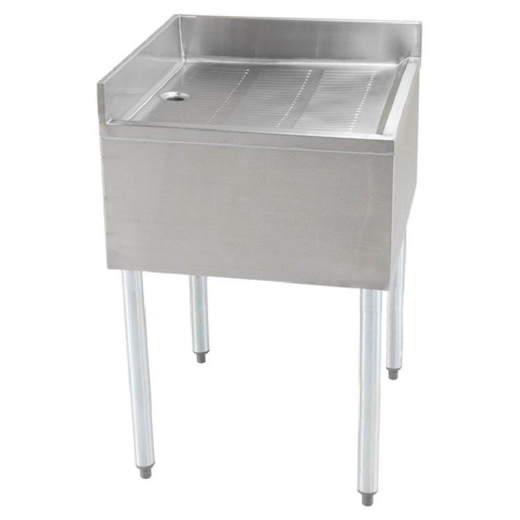 The BK Resources UB4-21-CDB Corner Drainboard is an ingeniously designed unit, perfectly crafted for efficient kitchen workflows with its compact 21" x 21" dimensions. This versatile drainboard is an essential addition to commercial kitchens, especially those with limited space, offering a practical solution for seamless integration into existing setups. It includes the BKDR-15CP drain, ensuring effective water disposal and maintaining a clean work environment. The stainless steel legs and bracing provide robust support and durability, making it an ideal choice for high-traffic areas. Each leg is equipped with adjustable high-impact corrosion-resistant bullet feet, which not only enhance stability on uneven surfaces but also contribute to the unit's longevity and adaptability in various settings. The BK Resources UB4-21-CDB's thoughtful construction and quality materials make it a valuable asset for restaurants, catering services, and any food service operation requiring reliable and efficient drainage solutions. Its user-focused design ensures that it meets the demands of diverse market segments within the industry, enhancing operational efficiency without compromising on durability and quality.