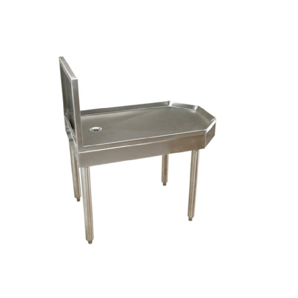 BK Resources, UB4-24-FDM18, Underbar Frozen Drink Machine Stand, 18" x 24", stainless steel open base, low work surface fits most machines, rear drain with raised sides to prevent spillage, stainless steel legs with adjustable foot.