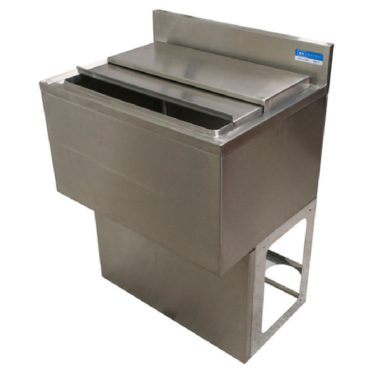 The BK Resources UBB-18-IBCP30-10 Underbar Ice Bin with 10-circuit aluminum cold plate is engineered for efficiency and durability in commercial settings. With a substantial ice capacity of 80 lbs, this ice bin is designed to meet the demands of high-volume service environments. Measuring 25 inches in width, 15 inches front-to-back, and 12-9/16 inches deep, it offers a compact yet spacious solution for underbar installations. The inclusion of a 10-circuit aluminum cold plate enhances its utility by ensuring optimal cold retention, making it an invaluable asset for bar operations where ice and beverages need to be kept at precise temperatures. The 4-inch high backsplash effectively minimizes spillage, maintaining cleanliness and hygiene. Constructed from 18/304 stainless steel, the UBB-18-IBCP30-10 promises exceptional longevity and resistance to corrosion, a critical feature for any food service equipment. It is supported by a pedestal base that provides stability and ease of access. Adhering to NSF standards, this product assures compliance with public health and safety regulations. The BK Resources UBB-18-IBCP30-10 is an ideal choice for bars, restaurants, and catering services that prioritize reliability and functional design in their ice storage solutions.