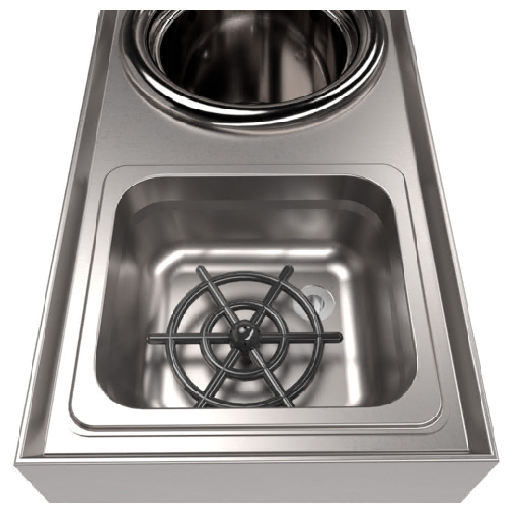 - Features an efficient dipper well faucet system
