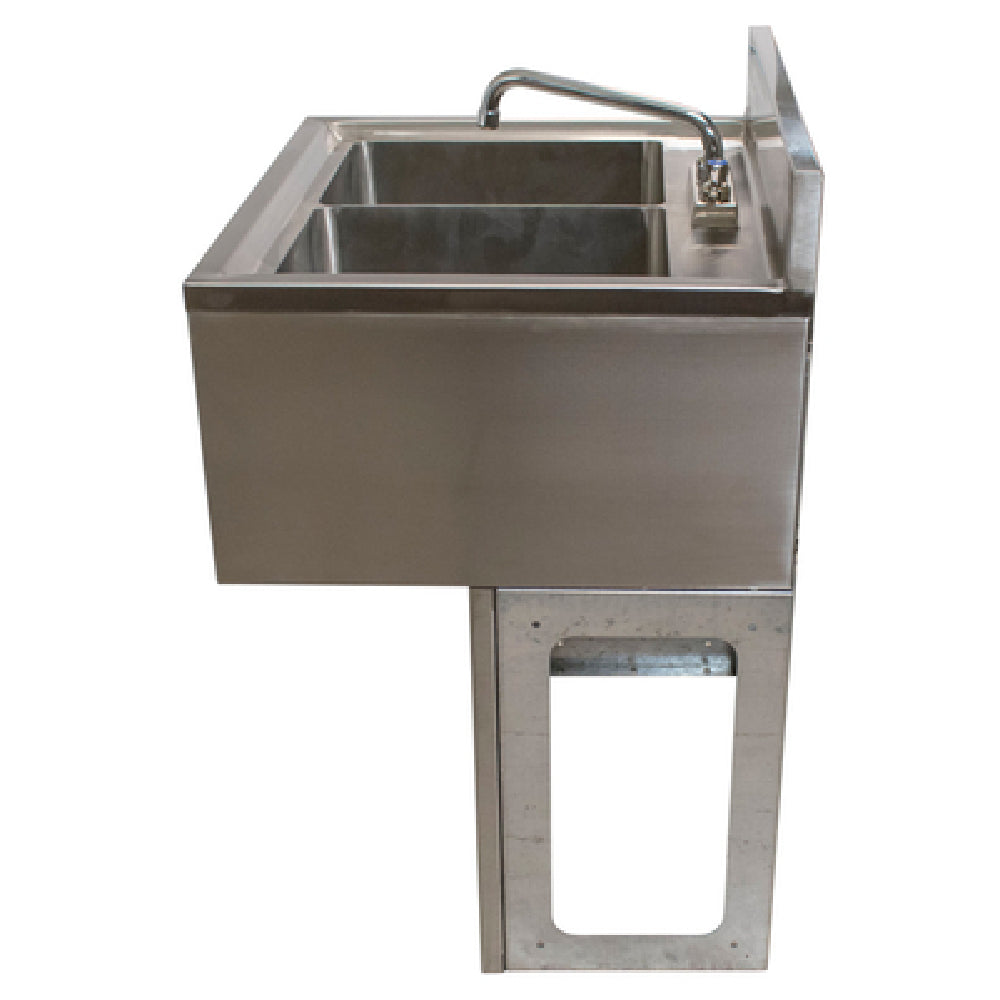 The BK Resources UBB-21-472TS Underbar Sink is a high-quality, durable solution designed for commercial establishments requiring robust, efficient multi-compartment sinks. With an overall size of 72"W x 21-1/4"D x 34"H, it features four compartments each measuring 10" wide x 14" front-to-back x 10" deep, providing ample space for various kitchen tasks. The sink includes (2) left and right 13-3/4" stamped drainboards to facilitate efficient workflow. A 4-1/2" high backsplash helps in maintaining cleanliness by preventing water spills. This product is equipped with (2) 4" OC deck mount lead-free faucets (BKD-10-G), ensuring compliance with health standards. Constructed from durable 18/304 stainless steel, the sink includes a stainless steel apron on the front and sides for enhanced longevity. It also comes with basket drains (BKDR-2) and removable overflow standpipes (BK-OT-15075) for improved water management. The removable stainless steel front panel on a galvanized pedestal base offers ease of maintenance. NSF certification ensures its adherence to public health and safety standards, making it an excellent choice for bars, restaurants, and other food service operations prioritizing efficiency, hygiene, and reliability.