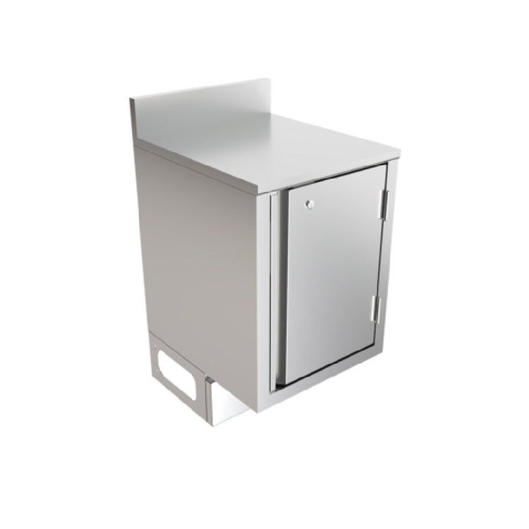 BK Resources, UBC-B-21-F18HL, Call Series Underbar Cabinet, flat top, pedestal base, 18"x21", 18-gauge stainless steel construction, accepts optional adjustable shelf, riser, hinged door with lock, (3-10 Day Lead Time).