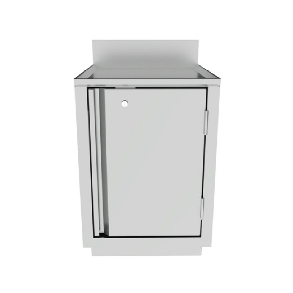 BK Resources, UBC-B-21-W18HL, Call Series Underbar Cabinet, flat top, 18"x21", pedestal base, 18-gauge stainless steel construction, accepts optional adjustable shelf, riser, hinged door with lock, (3-10 Day Lead Time).