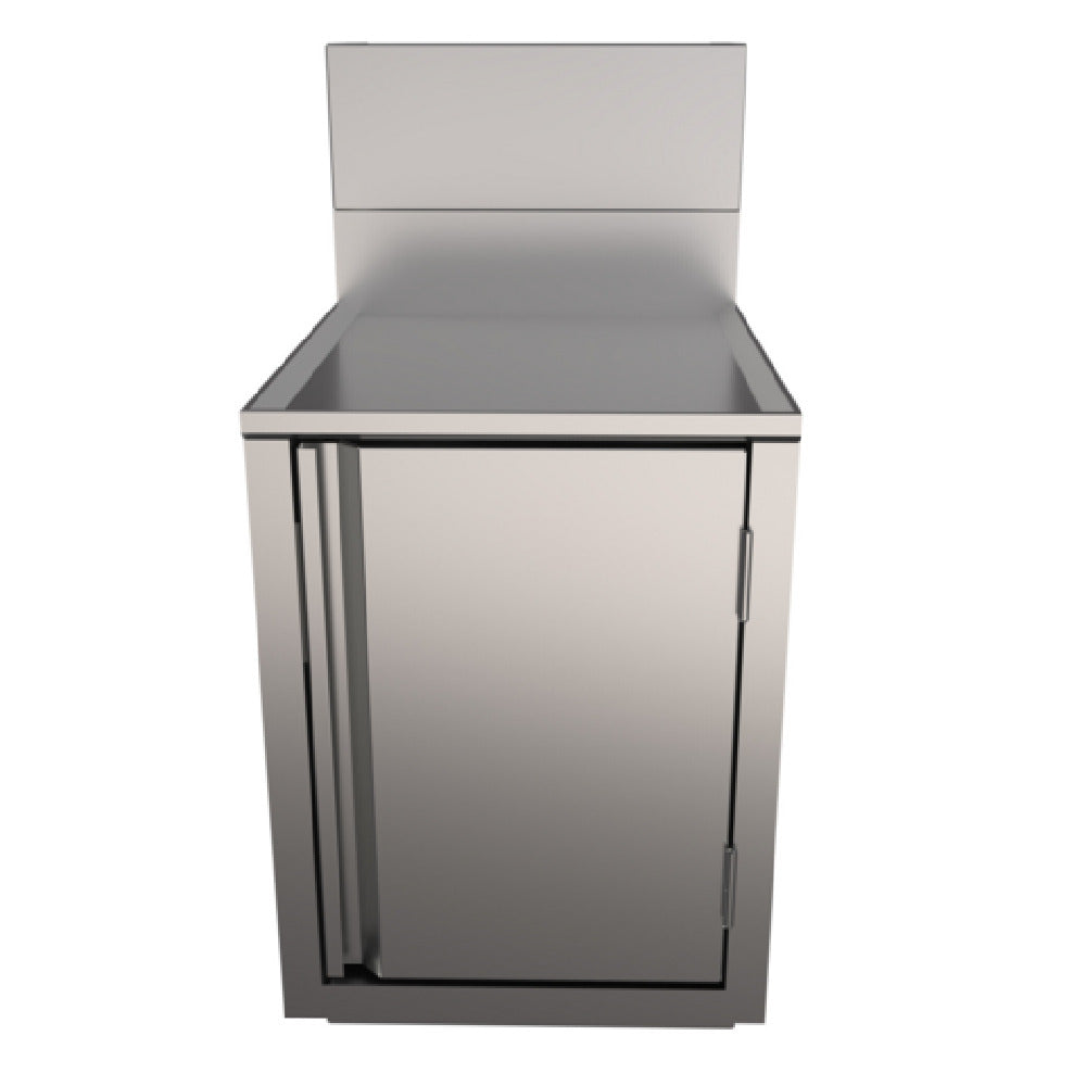 BK Resources, UBC-DW-21-W18H, Top Shelf Underbar Cabinet, flat top with raised edge, 18"x21", die wall, 18-gauge stainless steel construction, accepts optional adjustable shelf, riser, hinged door, (3-10 Day Lead Time).