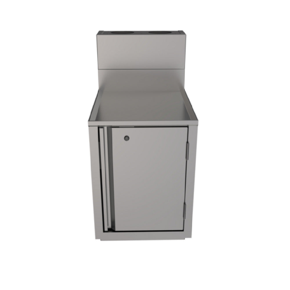 BK Resources, UBC-DW-21-W18HL, Top Shelf Underbar Cabinet, flat top with raised edge, 18"x21", die wall, 18-gauge stainless steel construction, accepts optional adjustable shelf, riser, hinged door with lock, (3-10 Day Lead Time).