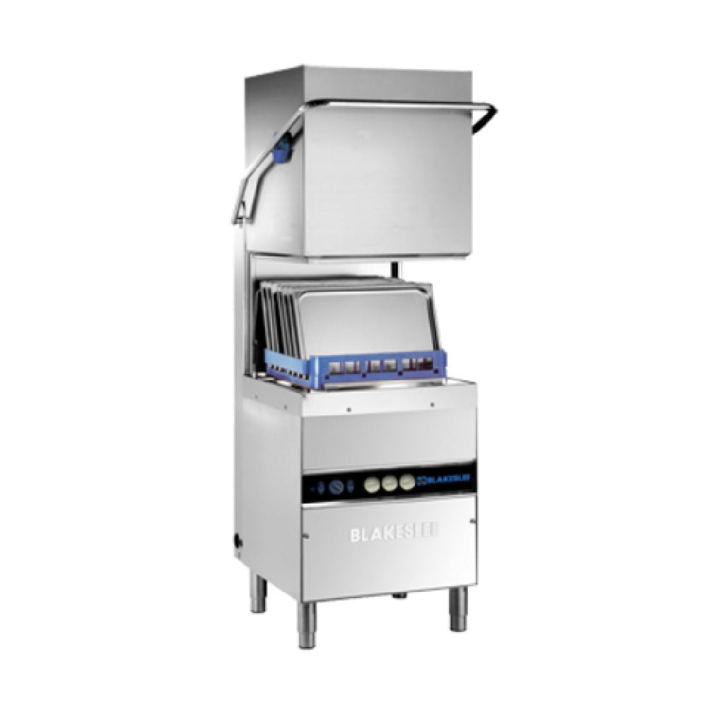 The Blakeslee D-18-1 Dishwasher Hood Type 28-3/8"W is a highly efficient cleaning solution, specifically engineered for commercial kitchen environments that demand precision and reliability. Featuring a hood-operated stop/start mechanism, this dishwasher ensures seamless operation and integrates a 9.8kW booster heater to deliver a 180-degree temperature sanitizing rinse, crucial for maintaining impeccable hygiene standards. Its capacity to process up to 30 racks per hour makes it a suitable choice for high-volume operations. For chemical applications, it includes built-in detergent and rinse-aid pumps, enhancing ease of use. The upper and lower revolving type wash sprays, coupled with a robust triple filter system, ensure comprehensive cleaning performance. Constructed with a 304 stainless steel interior and exterior, and a 316 stainless steel tank, the unit is designed for durability and long-term use. Supporting its operation is a 2.94kW electric tank heat and a 1-1/2 HP motor, optimally balancing power and efficiency. The inclusion of a drain pump emphasizes its efficiency in managing wastewater. Certified by cETLus and ETL-Sanitation, this dishwasher not only meets but exceeds industry standards, making it a versatile asset for a variety of food service establishments.