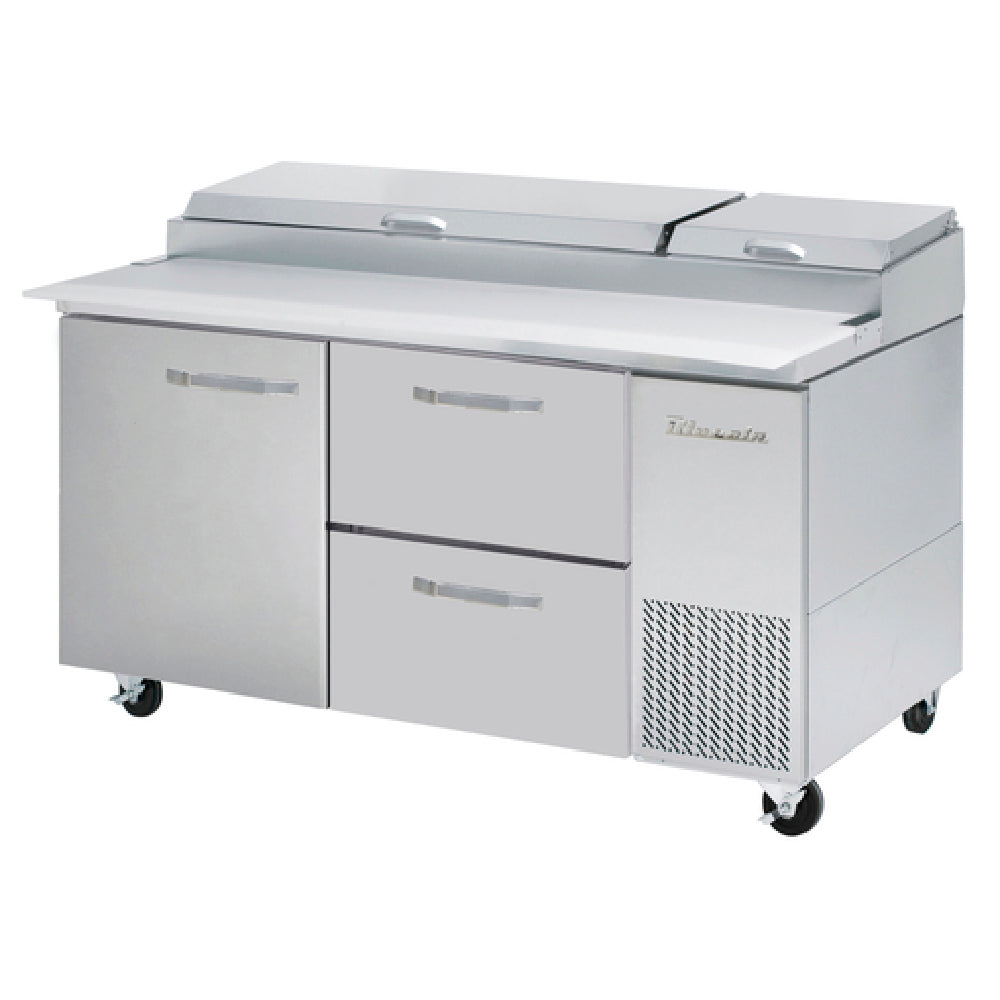 - 67"W pizza prep table with 20.2 cu. ft. capacity