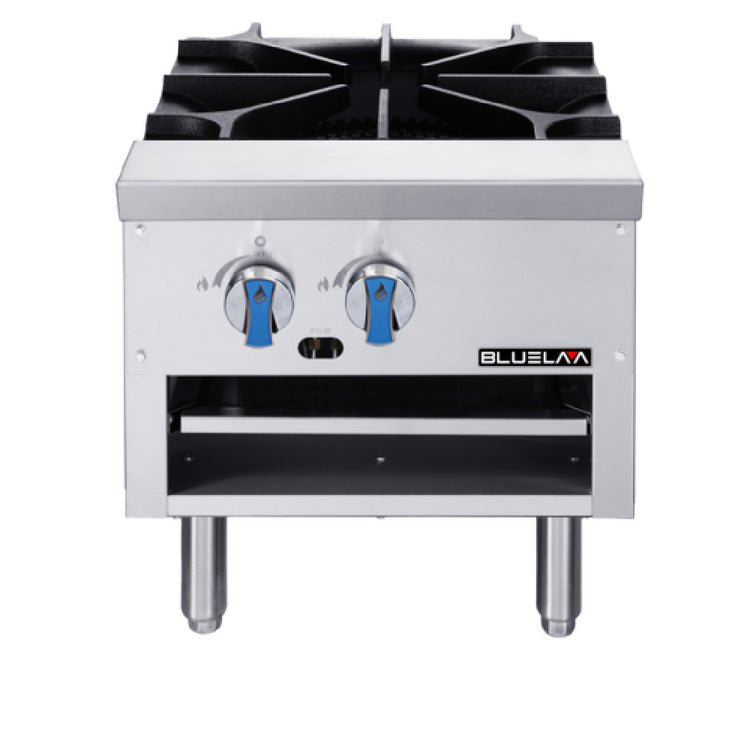 Blue Air FSE LLC, BLSP1-L, Low Stock Pot Range, gas, 18"W x 24-1/4"D x 18"H, (1) heavy duty cast iron three-ring burner, cast iron top grates, manual controls, drip pan, stainless steel pilots & tubing, stainless steel legs, 80,000 BTU/H, cCSAus, CSA-Sanitation