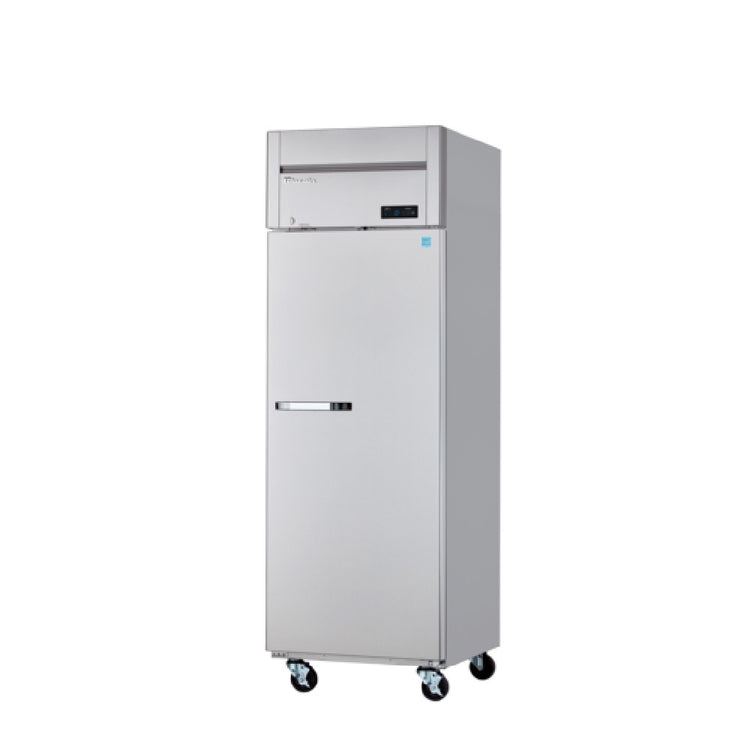 The Blue Air BSR23T-HC Refrigerator Reach-in One-section is a highly efficient and compact refrigeration solution, featuring a 23 cu. ft. capacity that is perfect for commercial kitchens and food service establishments. It is equipped with a top-mounted self-contained refrigeration system, which utilizes R290 Hydrocarbon refrigerant, a more environmentally friendly option. The unit is powered by a 1/4 HP motor and runs on 115v/60/1-ph, drawing only 3.0 amps, making it energy-efficient with its ENERGY STAR certification. The refrigerator has one solid locking door with a door open alarm to ensure optimal cooling and security. Inside, four adjustable wire shelves offer flexible storage options, while digital controls and LED interior lighting enhance usability and visibility. Constructed with a stainless steel interior and exterior, the BSR23T-HC is both durable and easy to clean. The unit is mounted on 4" swivel casters, two of which are braked for stability, allowing for easy mobility within your workspace. Certified by cETLus and ETL-Sanitation, this refrigerator meets rigorous safety and sanitation standards, making it a reliable and high-quality addition to any commercial kitchen environment.