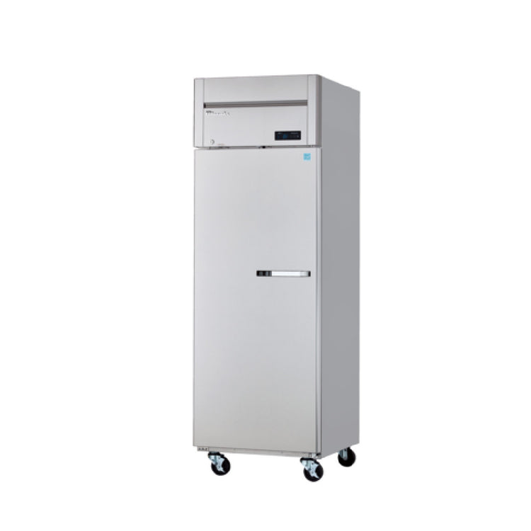 Blue Air FSE LLC, BSR23T-L-HC, Refrigerator, reach-in, one-section, 23 cu. ft. capacity, top-mount self-contained refrigeration, left-handed model, (1) locking solid door, door open alarm, (4) adjustable wire shelves, digital controls, LED interior lighting, stainless steel interior & exterior, 4” swivel casters (2 braked), R290 Hydrocarbon refrigerant, 1/4 HP, 115v/60/1-ph, 3.0 amps, cord with NEMA 5-15P, cETLus, ETL-Sanitation, ENERGY STAR®