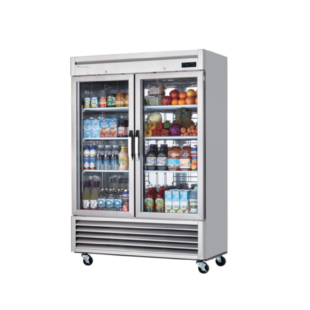 The Blue Air BSR49G-HC Refrigerator Reach-in Two-section stands out with a 49 cubic feet capacity, catering to the refrigeration needs of diverse commercial environments. This refrigerator features bottom-mount self-contained refrigeration, optimized with R290 Hydrocarbon refrigerant, a sustainable choice for environmentally conscious operations. Equipped with two full-size self-closing glass doors that lock, it ensures security and efficiency in energy usage. The inclusion of a door open alarm further enhances operational safety. Its eight adjustable wire shelves provide customizable storage solutions, adaptable to varying inventory sizes. For optimal visibility, the refrigerator is outfitted with LED interior lighting, ensuring contents are easily accessible and visibly clear. Constructed with stainless steel both inside and out, it guarantees durability and ease of maintenance. Additionally, 4-inch swivel casters, with two that include brakes, offer mobility and stability. This unit operates on 115 volts, with a half-horsepower motor and a 5.6-amp current, complete with a cord and NEMA 5-15P plug for straightforward installation. Certified with cETLus and ETL-Sanitation, the Blue Air BSR49G-HC Refrigerator aligns with industry standards, making it a reliable choice for commercial kitchens and food service establishments.
