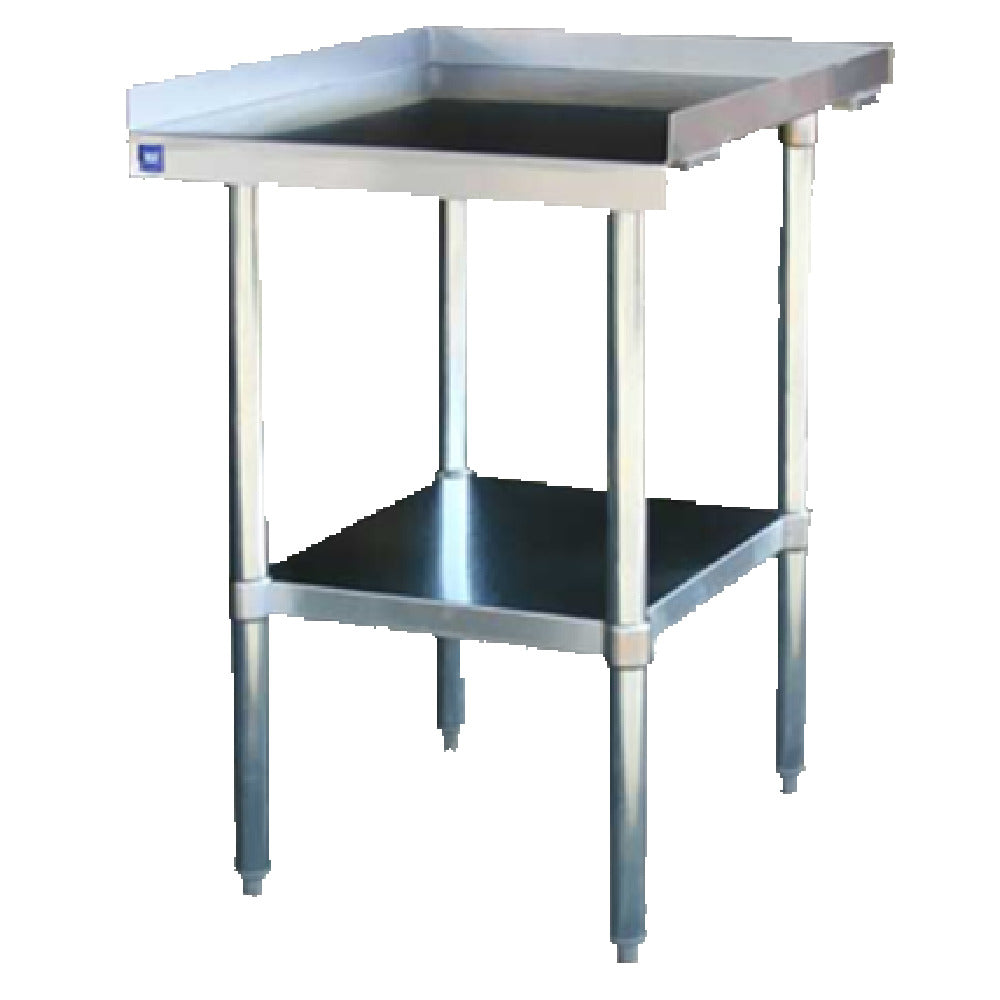 The Blue Air ES3048 heavy duty equipment stand is a versatile and sturdy platform designed for various industrial and commercial applications. Measuring 48 inches in width, 30 inches in depth, and 25-3/4 inches in height, it provides ample surface area for supporting a wide array of equipment. This stand is constructed with 16 gauge 430 stainless steel, known for its durability and corrosion resistance, making it ideal for environments that require reliable and long-lasting equipment solutions. An adjustable galvanized steel undershelf offers additional storage flexibility, allowing users to customize the stand according to their specific needs. The galvanized steel legs ensure stability and strength, capable of supporting heavy equipment with ease. Each leg is equipped with a one-inch adjustable plastic bullet foot, providing level placement on uneven surfaces and enhancing overall safety. NSF certification highlights its compliance with high standards of public health and safety, a crucial feature for food service and healthcare industries. This equipment stand is an invaluable addition to any professional kitchen, laboratory, or manufacturing setting, offering a robust platform that meets the demanding requirements of various sector markets while maintaining superior structural integrity.