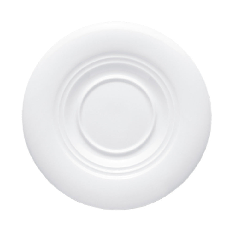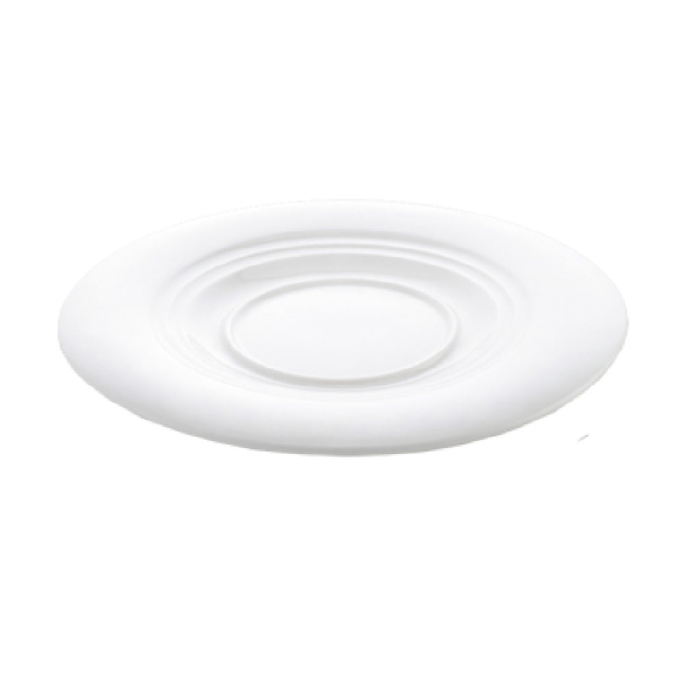 The Bon Chef 1000009P Concentrics Saucer is a meticulously crafted dining accessory designed for both style and durability, measuring 6-1/10" x 6-1/10" x 3/5". This round saucer features a wide rim that adds a touch of elegance to any table setting, making it suitable for upscale restaurants, catering services, or high-end hospitality venues. Manufactured from a fully vitrified alumina body, it boasts enhanced strength and resistance to chipping, supported by a substantial 3-year chip warranty. The saucer is made of pristine white porcelain, offering a classic and versatile aesthetic that complements a variety of tableware collections. Its compatibility with the Bon Chef items 1000006P and 1000007P adds practical value to establishments looking to maintain a cohesive and professional presentation. The saucer is microwave, dishwasher, and oven safe, providing convenience and efficiency in busy foodservice environments. Packed with 36 pieces per case, this product is ideal for bulk purchasing, ensuring that large-scale operations can seamlessly integrate it into their service ware. The Bon Chef 1000009P Concentrics Saucer is a premium choice for industry professionals seeking quality, durability, and aesthetic appeal in their tabletop solutions.