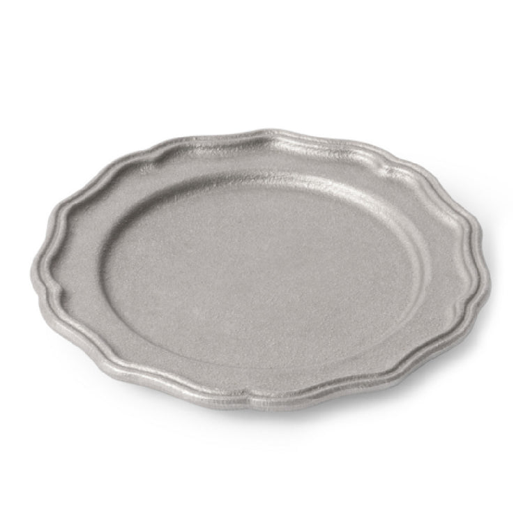 - Elegant 5" aluminum plate with luxurious Pewter-Glo finish