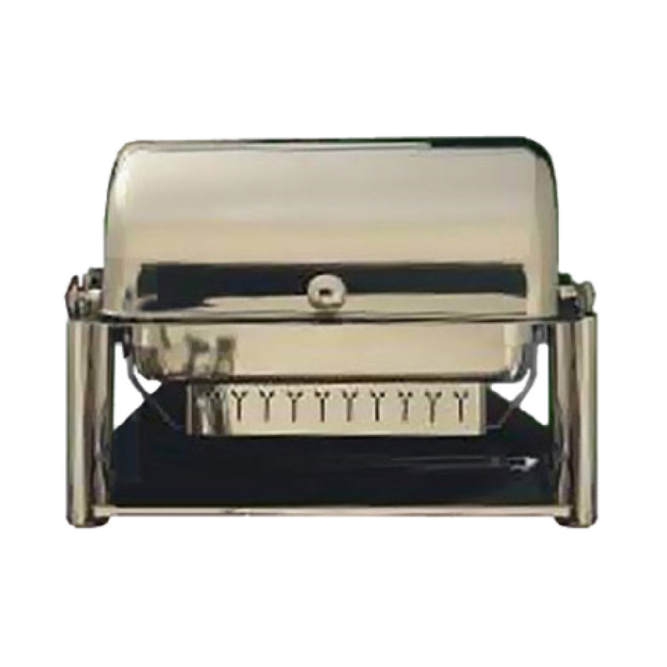 The Bon Chef 11041D New Olympia Chafer Rectangular 2 Gallon is a premium food service solution designed for professionals seeking both functionality and elegance in food presentation. It features a 2-gallon capacity, making it a versatile choice for catering events or buffet setups. The dimensions when open are 27-1/4" x 17" x 12", and it efficiently compacts to 18-3/4" when closed. A standout feature is its dripless cover and water pan, complemented by a roll-top lid that can open from half to full position, enhancing ease of access and convenience. The lid’s slow down feature ensures smooth and controlled operation, which is essential during high-traffic service situations. Additionally, the chafer is equipped with a windguard fuel holder to ensure a stable flame, even in outdoor settings. Rubber pads provide stability and protect surfaces, while vent holes on the cover optimize steam flow, maintaining food quality. Crafted from high polish stainless steel, this chafer not only demonstrates durability but also offers an elegant presentation. These technical attributes make the Bon Chef 11041D New Olympia Chafer a reliable and sophisticated choice for various market segments, from upscale catering companies to high-end hotel buffets and event planners aiming to impress their clientele.