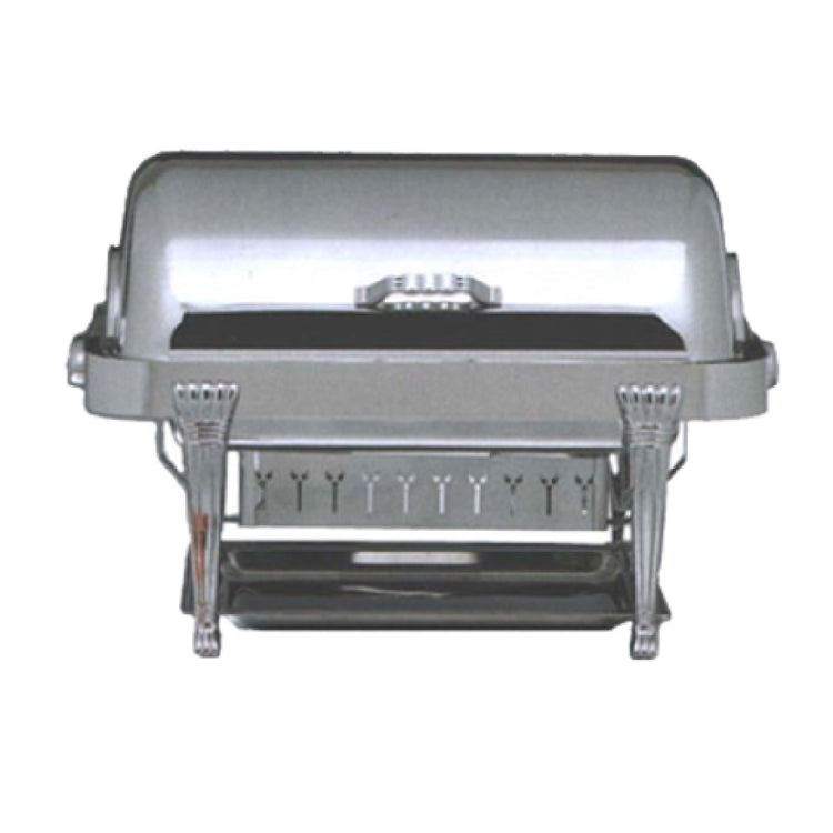 The Bon Chef 12040CH Elite Chafer - Rectangular 2 Gallon is a premium kitchenware item engineered for professional catering and hospitality environments. Meticulously constructed from stainless steel, this chafer features Aurora legs and chrome handles and medallions, enhancing both durability and aesthetic appeal. It includes a dripless water pan and cover, ensuring minimal mess and ease of use. A windguard adds a layer of functionality, particularly in outdoor settings, while the full roll down and halfway locking cover offers versatile serving options. The slow down lock mechanism provides controlled handling and enhanced safety during use. This 2-gallon chafer is perfect for serving a variety of dishes, making it an essential tool for event caterers, hotels, and banquet facilities. It comes with a Limited Lifetime Warranty, signaling Bon Chef's commitment to quality and customer satisfaction. Whether you're serving piping hot entrees or delectable desserts, the Bon Chef 12040CH Elite Chafer delivers outstanding performance and reliability, adapting effortlessly to the dynamic needs of the foodservice industry. Its thoughtful design and robust features make it a valuable addition to any professional kitchen, catering to the demands of high-volume service with elegance and efficiency.