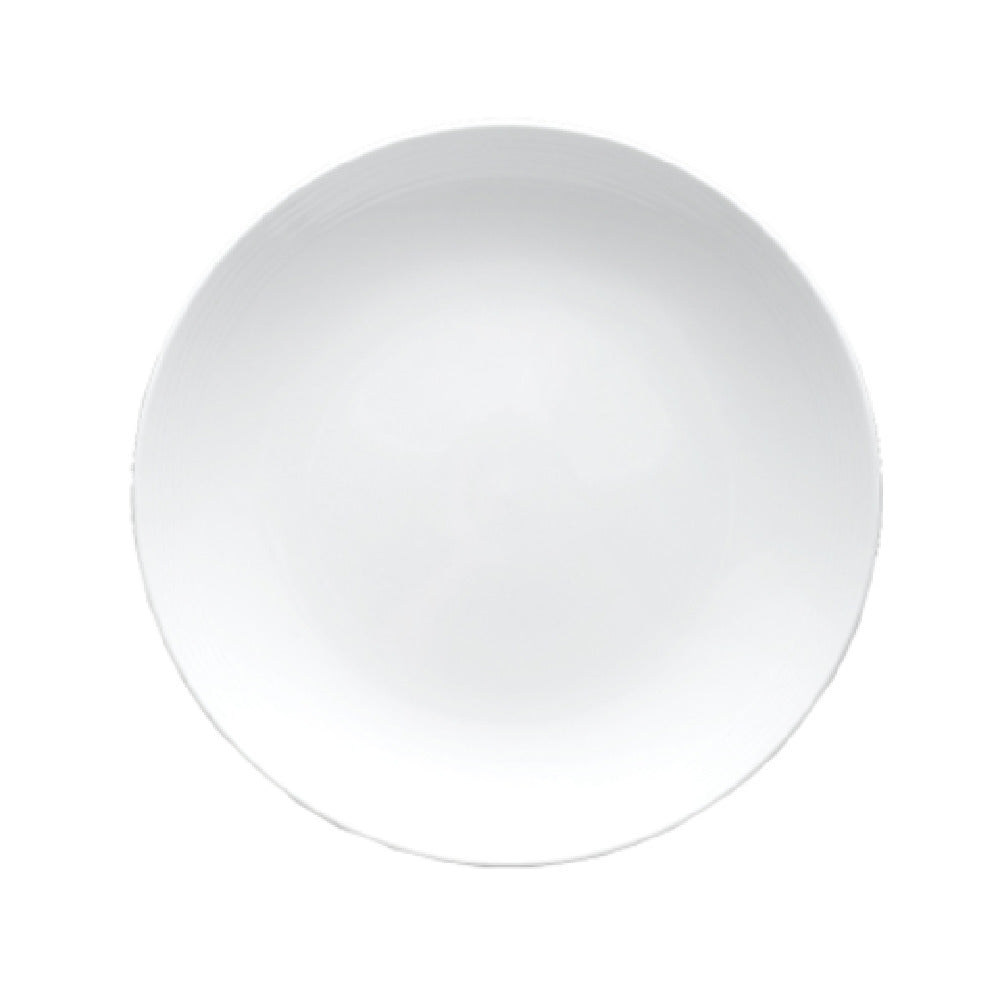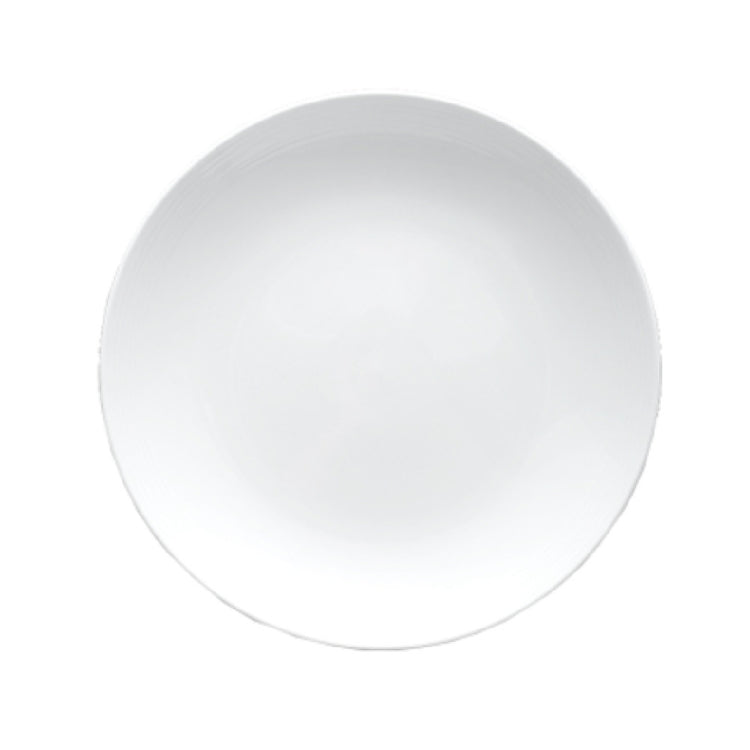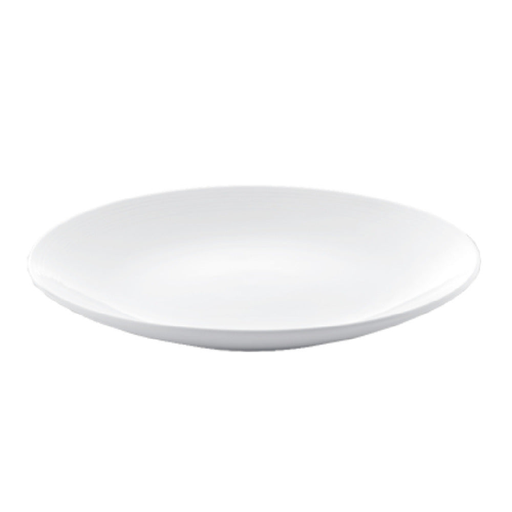 The Bon Chef 1300009P Circles Dinner Plate is a meticulously crafted round coupe plate, measuring 11 inches by 11 inches by 1-1/10 inches. This dinner plate is constructed with a fully vitrified alumina body, ensuring enhanced durability and resistance to chipping, backed by a three-year chip warranty. The porcelain material gives the plate a pristine white finish, adding a touch of elegance to any dining setting. This product is designed to be versatile, being microwave, dishwasher, and oven safe, making it suitable for various food service environments. Whether for high-traffic restaurants, upscale catering events, or even at-home dining experiences, the Bon Chef Circles Dinner Plate serves different segment markets by providing a reliable and aesthetically pleasing option. The plate is conveniently packed with 18 pieces per case, accommodating the needs of large-scale operations. Its robust design and sophisticated appearance make it a valuable addition to any tableware collection, ensuring both functionality and style in one package.