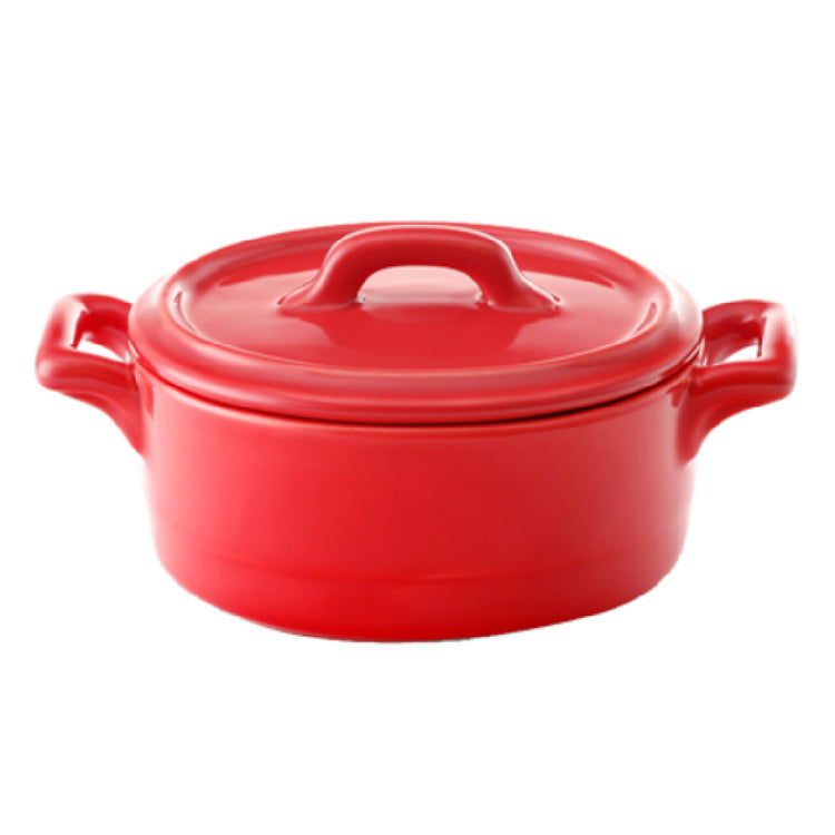 The Bon Chef 1600005PRED Cocottes Cover for 5-1/4" Oval Baker Base is crafted from high-quality porcelain, providing a durable and aesthetically pleasing finish. This cover, designed specifically for a 5-1/4" oval baker base, is presented in a vibrant red color, adding a touch of sophistication to any kitchen or dining setting. Each case is packed with 36 covers, making it an excellent choice for restaurants, catering services, and hospitality businesses that require a large quantity of high-quality kitchenware. The porcelain material ensures that the cover is resistant to chipping and cracking, maintaining its pristine appearance over time. Additionally, its design allows for a snug fit on compatible oval baker bases, helping to retain heat and moisture during cooking and serving. The Bon Chef 1600005PRED Cocottes Cover is not only a functional kitchen accessory but also enhances the presentation of dishes, providing a seamless blend of utility and style for culinary professionals and enthusiasts alike. This cover meets the demands of high-volume food service environments, offering reliability and consistency across various market segments within the culinary industry.