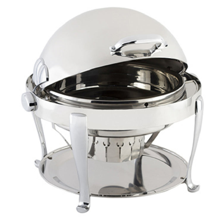 The Bon Chef 19000CH Elite Chafer Round 2 Gallon is an exceptional solution for catering presentations and buffet settings, tailored for precision and elegance. With a capacity of 2 gallons, this chafer is constructed from stainless steel, ensuring durability and a polished aesthetic. Its design is enhanced with chrome Roman legs, handles, and medallions, adding a touch of sophistication to the overall presentation. A standout feature is its dripless water pan and cover, which minimize spills and maintain a clean serving area. Additionally, the chafer includes a windguard, making it suitable for outdoor events by protecting the food from wind interference. The full roll-down cover can lock halfway, providing convenience and flexibility during service. To ensure safety and user-friendliness, the chafer incorporates a slow-down lock mechanism. Backed by a Limited Lifetime Warranty, the Bon Chef 19000CH Elite Chafer assures quality and reliability in demanding environments. This chafer presents an all-encompassing catering solution, uniquely suited for upscale events, wedding venues, and hotel buffets, where a combination of aesthetic appeal and functional reliability is essential.