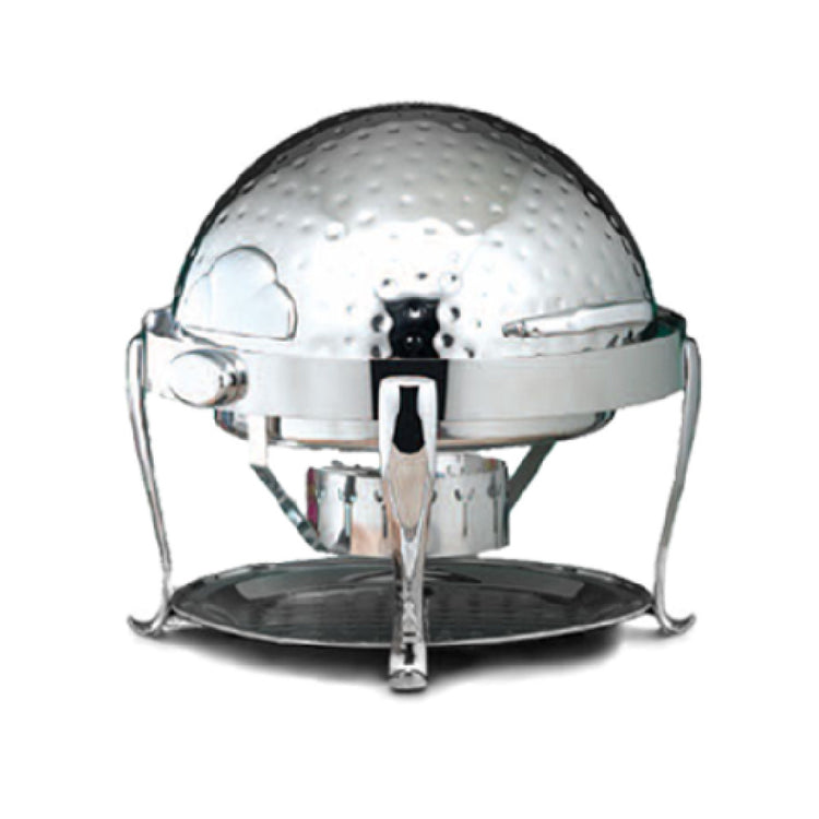 The Bon Chef 19000CHH Elite Chafer Round 2 Gallon is a meticulously crafted piece of culinary equipment designed to meet the high standards of the food service industry. This chafer is made from durable stainless steel, ensuring longevity and resistance to wear, while its chrome Roman legs, handles, and medallions add an elegant touch to its appearance. The unit is equipped with a dripless water pan and cover, which helps maintain cleanliness and reduces the need for constant maintenance in busy environments. A windguard feature is included, offering protection in outdoor settings, making it versatile for both indoor and outdoor events. The full roll-down cover with a halfway locking feature and a slow-down lock mechanism enhances operational convenience, allowing for easy access and efficient serving. Its hammered finish provides a sophisticated aesthetic, appealing to upscale dining establishments or catering services. Additionally, the product is backed by a Limited Lifetime Warranty, assuring customers of its quality and the manufacturer's confidence in its performance. With its combination of style, functionality, and durability, the Bon Chef 19000CHH Elite Chafer is an excellent choice for catering companies, hotels, and high-end restaurants seeking reliable and stylish serving solutions.