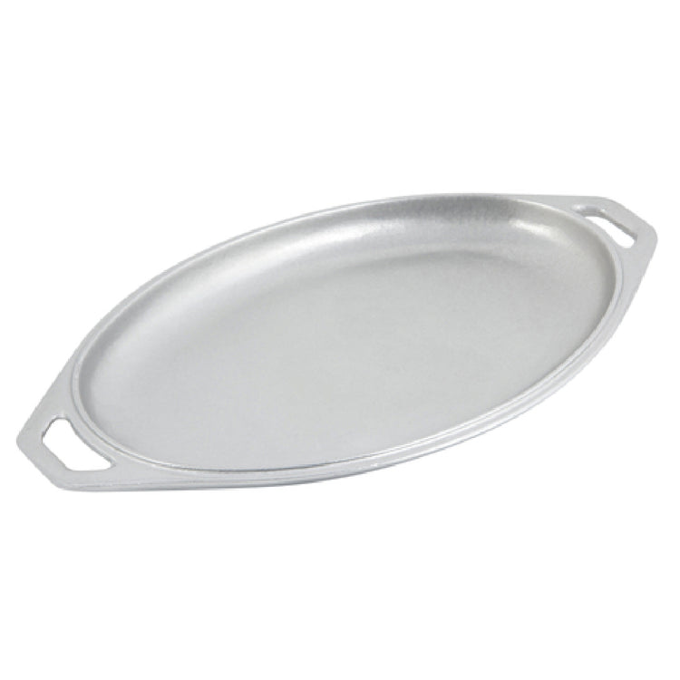 The Bon Chef 2006 Platter/Casserole Dish Cover is precisely crafted to meet the diverse needs of the culinary industry with its sleek 9-inch by 15-inch by 1-inch high oval design. This dish cover is made from high-quality aluminum, ensuring durability and longevity in various kitchen environments. Its Pewter-Glo finish adds a touch of elegance and sophistication, making it a standout piece for both food service professionals and home cooks alike. The unique oval shape is specifically designed to fit standard platters and casserole dishes, providing comprehensive coverage and maintaining the warmth and freshness of the food. This cover is an excellent choice for catering businesses, restaurants, and home kitchens that require reliable and aesthetically pleasing dish coverings. Its aluminum construction offers lightweight handling while maintaining a sturdy and protective barrier over your culinary creations. The Bon Chef 2006 Platter/Casserole Dish Cover is a versatile and functional addition, tailored to enhance presentation and service efficiency across various dining settings. Whether used in bustling commercial kitchens or intimate family gatherings, this cover's practical size and distinctive finish deliver both utility and style.