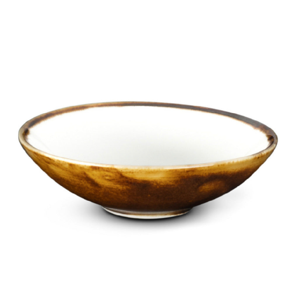 The Bon Chef 2020005P Tavola Bowl 12 Oz. Round is a meticulously crafted dining solution that combines functionality with elegant design. With a capacity of 12 ounces and a diameter of 6.25 inches, this bowl is perfect for serving soups, salads, or desserts, providing a versatile addition to any dining setting. Manufactured from fully vitrified porcelain, it ensures durability and resistance to chipping, backed by a one-year chip warranty. This bowl’s distinguishing feature lies in its dual-tone Amaretto finish, showcasing a sophisticated inner white and outer brown aesthetic. Its practicality is further evidenced by its compatibility with microwave, dishwasher, and oven use, safe up to 350°F, making it suitable for a variety of culinary applications. This product is ideal for both residential users seeking high-quality tableware and commercial establishments such as restaurants and hotels in need of reliable and stylistic serving solutions. The Bon Chef 2020005P Tavola Bowl offers not only a robust construction and appealing design but also versatile functionality, meeting the diverse needs of different market segments within the foodservice industry.