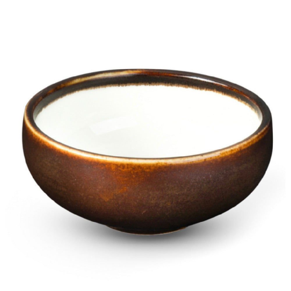 The Bon Chef 2020060P Tavola Ramekin 3 Oz. Round is a versatile piece of serveware designed for diverse culinary environments. This ramekin boasts a 3 oz. capacity with a 3-inch diameter, making it ideal for serving small portions, sauces, or desserts. Crafted from fully vitrified porcelain, it offers durability and a polished finish that is both microwave and dishwasher safe, ensuring ease of use and maintenance in busy kitchen settings. Additionally, it is oven safe up to 350°F, enhancing its utility in professional culinary applications. The ramekin features a distinctive color scheme with an inner white and outer brown Amaretto finish, adding a touch of elegance to any dining presentation. A notable benefit includes a 1-year chip warranty, underscoring its quality and resilience, which is particularly appealing for restaurants, caterers, and home chefs who need reliable and long-lasting serveware. This product is a practical choice for those seeking a combination of style, functionality, and durability in their kitchenware.