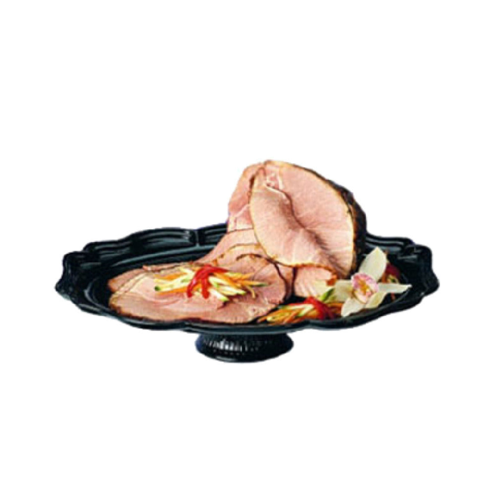 The Bon Chef 20281HGRN Pedestal Tray is a meticulously crafted serving solution measuring 14-3/4 inches by 20 inches by 4-3/8 inches, with an elegant oval shape. Constructed from durable aluminum, this tray features a ceramic-look coating that provides a sophisticated Sandstone finish complemented by a vibrant Hunter Green hue, making it an eye-catching piece for any dining presentation. The integration of NSF certification assures adherence to strict public health standards, ensuring that this pedestal tray meets the highest quality and safety requirements. Its lightweight and robust construction make it suitable for banquet halls, catering services, and upscale dining establishments seeking to present their culinary creations with grandeur and style. The unique blend of a classic design with modern materials gives it a versatile edge, allowing it to seamlessly fit into various decor themes and settings. This tray's ability to combine aesthetic appeal with functional durability makes it a valuable asset for different segment markets within the food service industry, providing a reliable platform for displaying and serving an array of delicacies. Designed for both durability and elegance, the Bon Chef 20281HGRN Pedestal Tray is an exceptional choice for professionals aiming to elevate their food presentation standards.