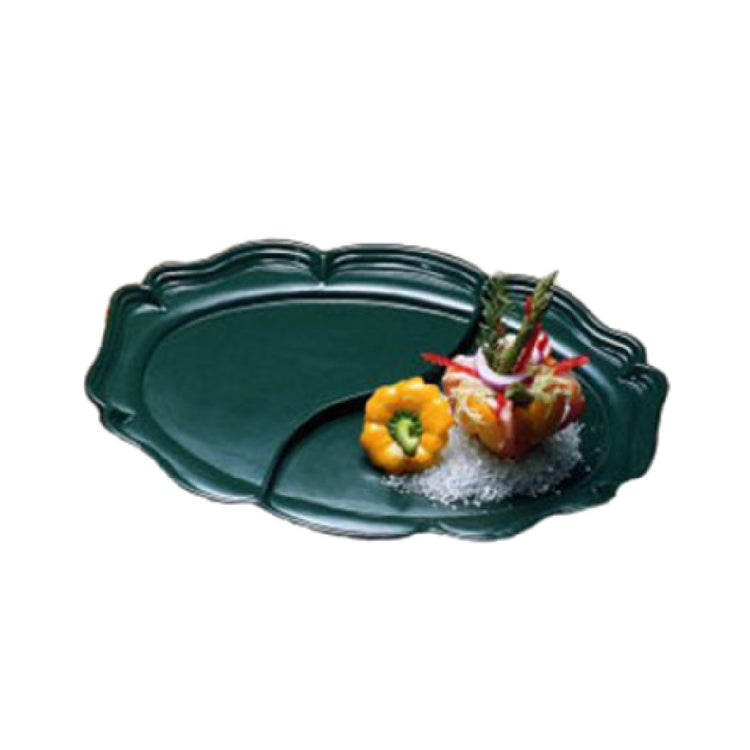 The Bon Chef 2028DWHTM Queen Anne Divided Platter is a meticulously crafted serving piece measuring 14-3/4 inches by 20 inches, designed for both elegance and functionality. Constructed from durable aluminum, this platter features a unique ceramic-look coating that enhances its aesthetic appeal while maintaining a matte white Sandstone finish. This combination of materials not only ensures longevity but also provides a sophisticated presentation surface, making it ideal for upscale dining establishments and catered events. The divided design of the platter allows for versatile food presentation, catering to the needs of chefs and caterers who require distinct sections for different culinary creations. As an NSF-certified product, it meets rigorous health and safety standards, underscoring its suitability for professional food service environments. This platter is particularly valuable for high-end restaurants and catering companies that demand both style and practicality. Its robust build and stylish appearance make it a standout piece in any table setting, offering a timeless design that complements a variety of decor themes. The Bon Chef 2028DWHTM Queen Anne Divided Platter's unique combination of functionality, durability, and aesthetic appeal positions it as an essential tool for culinary professionals seeking to elevate their presentation standards.