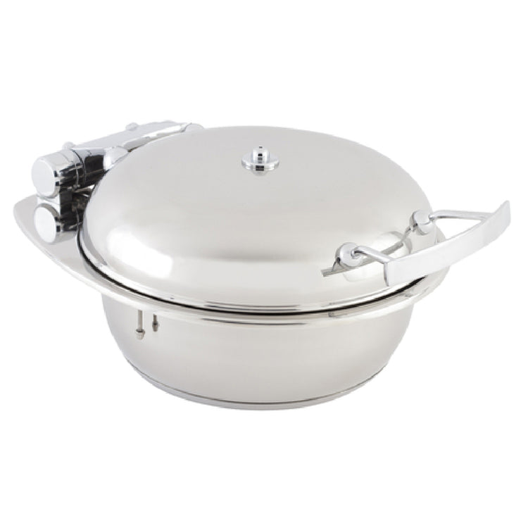 The Bon Chef 20304 Induction Mini Chafer, measuring 14-1/4" x 12-1/4" x 8", is a compact and efficient solution designed for culinary settings that demand elegance and functionality. This small, round chafer is uniquely designed without glass, providing a minimalist aesthetic that suits various dining environments. Its induction capability ensures rapid and even heating, making it a highly efficient option for maintaining food at optimal serving temperatures. The dimensions of 14-1/4" x 12-1/4" x 8" allow it to fit seamlessly into buffet setups or smaller catering events where space is at a premium. The absence of glass reduces the risk of breakage and simplifies maintenance, appealing to restaurant operators and caterers focused on durability and ease of use. This chafer's compact size and induction technology make it a versatile asset in hospitality services, whether for intimate gatherings or upscale dining experiences. Its sturdy construction ensures long-lasting performance, making it a reliable choice for those in the food service industry who seek both style and practicality. With its efficient design and practical features, the Bon Chef 20304 Induction Mini Chafer is tailored to meet the diverse needs of modern culinary professionals.