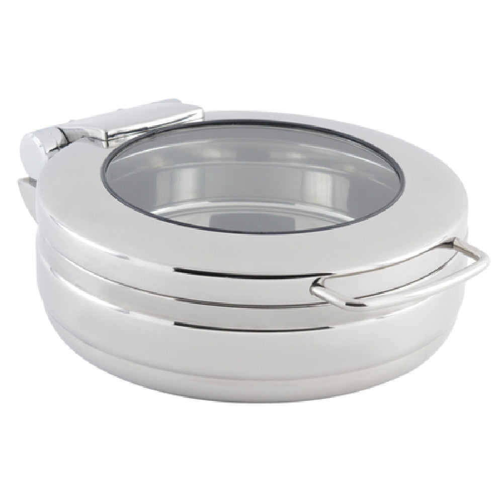 The Bon Chef 20310 Induction Chafer 14-3/4" L x 19" W x 5-1/8" H Round is expertly designed for culinary professionals who demand both functionality and elegance in their serving equipment. This full-size chafer is constructed from high-quality 18/8 stainless steel, ensuring durability and a sleek appearance suitable for any setting. With a capacity of 1 gallon, it is ideal for buffets, catering events, or dining establishments that require reliable and efficient food presentation solutions. The inclusion of a food pan enhances its practicality, while the glass hinged cover allows for effortless visibility of the dish being served, maintaining the meal's appeal. Although it does not come with a stand, its compatibility with induction heating systems makes it an energy-efficient choice, aligning with modern industry trends for sustainable operation. The round shape offers a stylish alternative to traditional rectangular chafers, contributing a touch of sophistication to any dining experience. The Bon Chef 20310 Induction Chafer is a versatile and essential piece of equipment for those looking to enhance their service with quality and style, meeting the demands of various market segments from high-end restaurants to large-scale catering services.