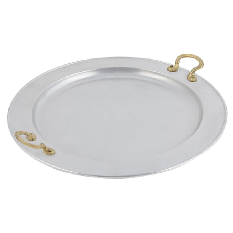 The Bon Chef 2050BHL Serving Tray 22" Dia. Round is an expertly crafted serving solution designed to blend functionality and elegance. Characterized by its round design with a diameter of 22 inches, this serving tray is well-suited for various hospitality settings, from upscale restaurants to catering events. The tray features two sturdy brass handles, providing ease of transport and a touch of sophistication. Additionally, the inclusion of legs enhances stability, making it a practical choice for any dining setup. The Pewter-Glo finish not only adds a sleek, modern aesthetic but also offers durability, ensuring the tray remains a staple in your serving repertoire for years to come. The combination of high-quality materials and thoughtful design elements makes this serving tray a versatile asset for both professional chefs and home entertainers alike, catering to a wide range of culinary presentation needs within the food service industry.