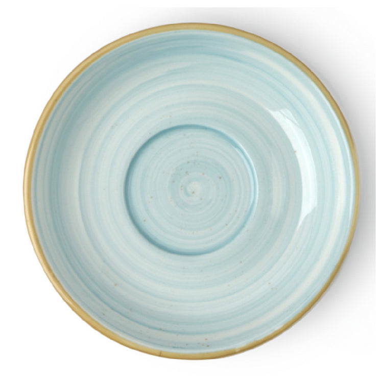 Bon Chef, 2060052P-SB, Tavola Saucer For Espresso Cup, 4.5" dia. x 1"H, alumina vitrified, microwave & dishwasher safe, porcelain, Artis, hand-painted, sky blue (3 year limited warranty)