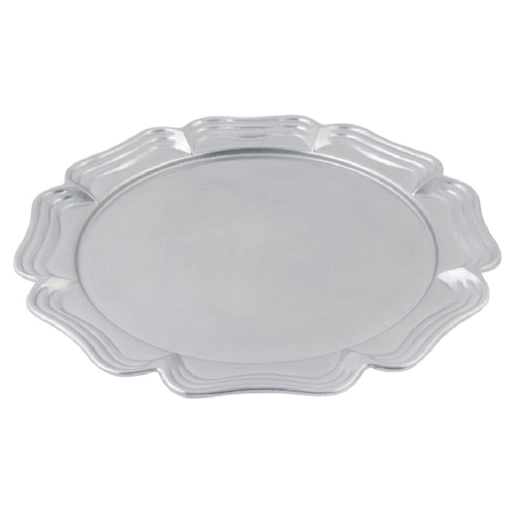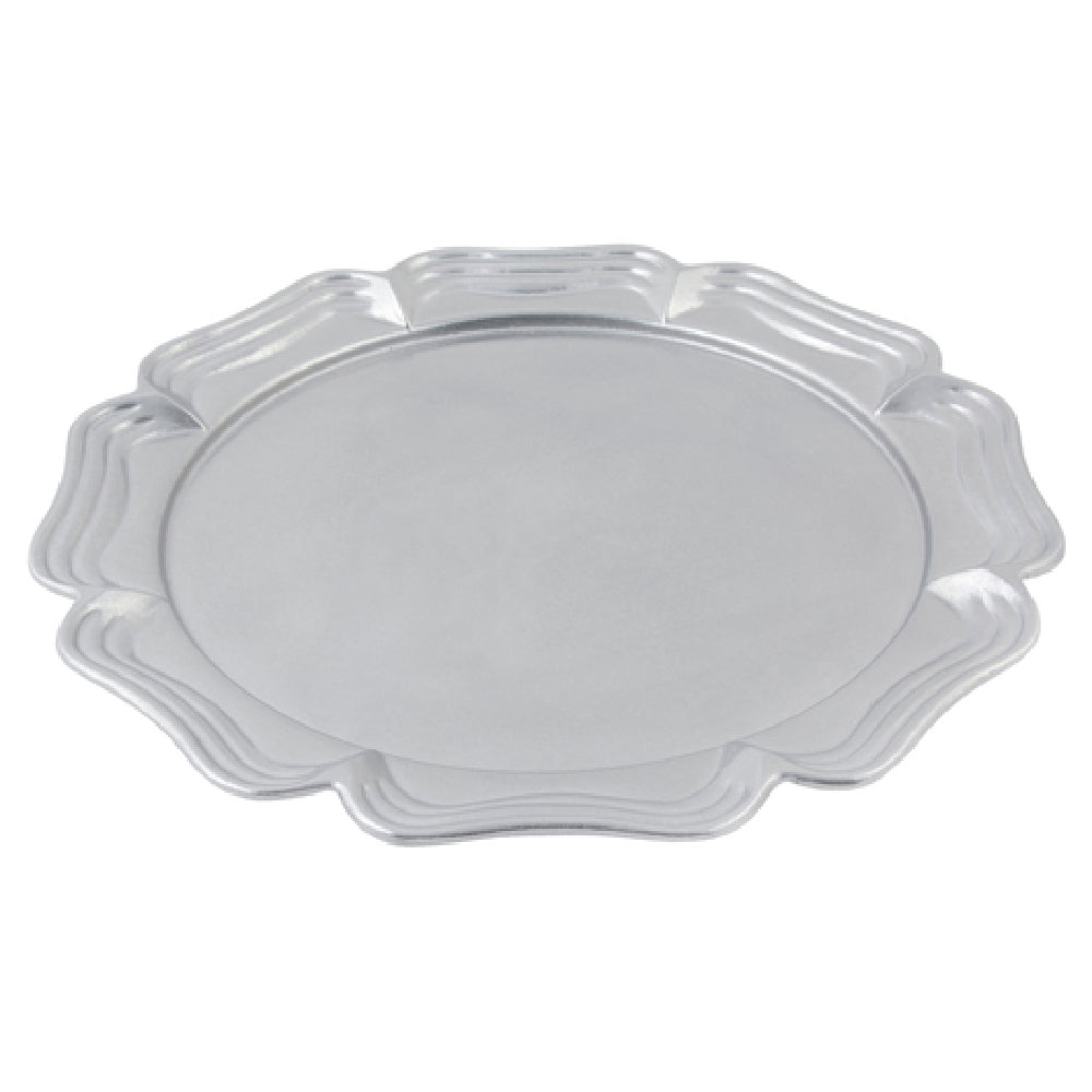 The Bon Chef 2062 Queen Anne Platter is a remarkable 20-inch diameter round platter crafted from aluminum, featuring a distinctive Pewter-Glo finish that adds a touch of elegance and sophistication to any dining presentation. This platter is meticulously designed for a variety of applications within the hospitality industry, catering to upscale restaurants, hotels, and banquet halls. Its NSF certification ensures that it meets stringent public health and safety standards, making it a reliable choice for professional food service environments. The aluminum construction provides durability and lightweight handling, while the Pewter-Glo finish offers a unique aesthetic appeal, seamlessly blending traditional charm with modern functionality. The expansive 20-inch diameter allows for versatile food presentation, accommodating everything from appetizers to main courses with ease. This makes it an ideal solution for chefs and event planners seeking both style and practicality in their service ware. The Bon Chef 2062 Queen Anne Platter epitomizes quality and timeless design, making it an essential item for those who value both form and function in their food presentation tools.