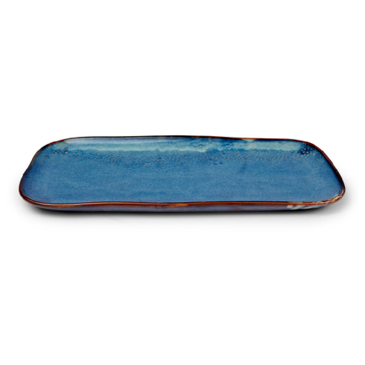 The Bon Chef 2100082P Tavola Platter is a rectangular serving piece measuring 14 inches in length, 6-1/2 inches in width, and 3/4 inches in height. Crafted from fully vitrified porcelain, this platter boasts a reactive blue Marea finish, giving it a distinctive visual appeal. The platter is microwave, dishwasher, and oven safe, withstanding temperatures up to 350°F, ensuring its versatility in various culinary applications. It comes with a 1-year chip warranty, reflecting its durable construction and reliability. The Tavola Platter is packed by 12 each per case, making it an ideal choice for catering businesses, restaurants, or home entertainers requiring multiple platters for large events or gatherings. Its robust design and elegant appearance cater to both the functional and aesthetic needs of professional chefs and home cooks alike, providing a practical yet stylish solution for food presentation. This platter is perfect for those in the hospitality industry who seek quality and endurance in their serveware, as well as for individuals looking to enhance their dining experience with a touch of sophistication.