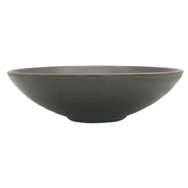 Bon Chef 2200000P Tavola Salad Bowl 30 Oz. 8-1/8" Dia. X 2-1/4"H is a meticulously crafted piece, ideal for the hospitality industry seeking a blend of style and functionality. This round salad bowl features an upstanding rim that enhances the presentation of its contents, while its fully vitrified porcelain construction ensures durability and a high-quality finish. Suitable for versatile kitchen environments, it is microwave, dishwasher, and oven safe up to 350°F, providing convenience and efficiency in food preparation and service. The Eros, reactive black design adds a touch of elegance, making it perfect for upscale dining experiences. Each bowl comes with a one-year chip warranty, highlighting its enduring quality. With dimensions of 8-1/8 inches in diameter and 2-1/4 inches in height, this 30-ounce capacity bowl is well-suited for serving generous portions. Packed by 12 each per case, it is a practical choice for restaurants, catering businesses, and event planners who prioritize both aesthetics and durability. The Bon Chef Tavola Salad Bowl stands out in its category by offering a harmonious blend of technical excellence and sophisticated design, catering to varying market segments within the food service industry.