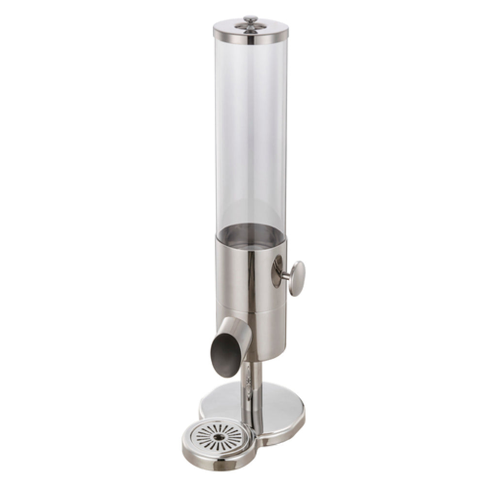 The Bon Chef 22021 Magnifico Cereal Dispenser is a meticulously designed unit with an 8-liter (2.11-gallon) capacity, perfectly catering to diverse market segments within the foodservice industry. Measuring 7-7/8" x 6-1/8" x 24"H, it provides a compact yet ample solution for dispensing cereals and similar dry goods. The dispenser features a clear acrylic container that allows for easy visibility of contents, ensuring that users can efficiently monitor inventory levels. Its base is crafted from high-quality 18/8 stainless steel, offering exceptional durability and resistance to corrosion, making it suitable for both high-traffic commercial environments and upscale dining settings. The Bon Chef 22021 Magnifico Cereal Dispenser is shipped in two boxes, ensuring safe and secure transport. Its sleek design and premium materials not only enhance functionality but also complement the aesthetic appeal of any breakfast bar or buffet setup. This product is an ideal choice for hotels, cafeterias, and restaurants looking to provide guests with a convenient and hygienic cereal dispensing solution while maintaining a stylish presentation. The Bon Chef 22021 Magnifico Cereal Dispenser combines form with function, making it a valuable addition to any foodservice operation.