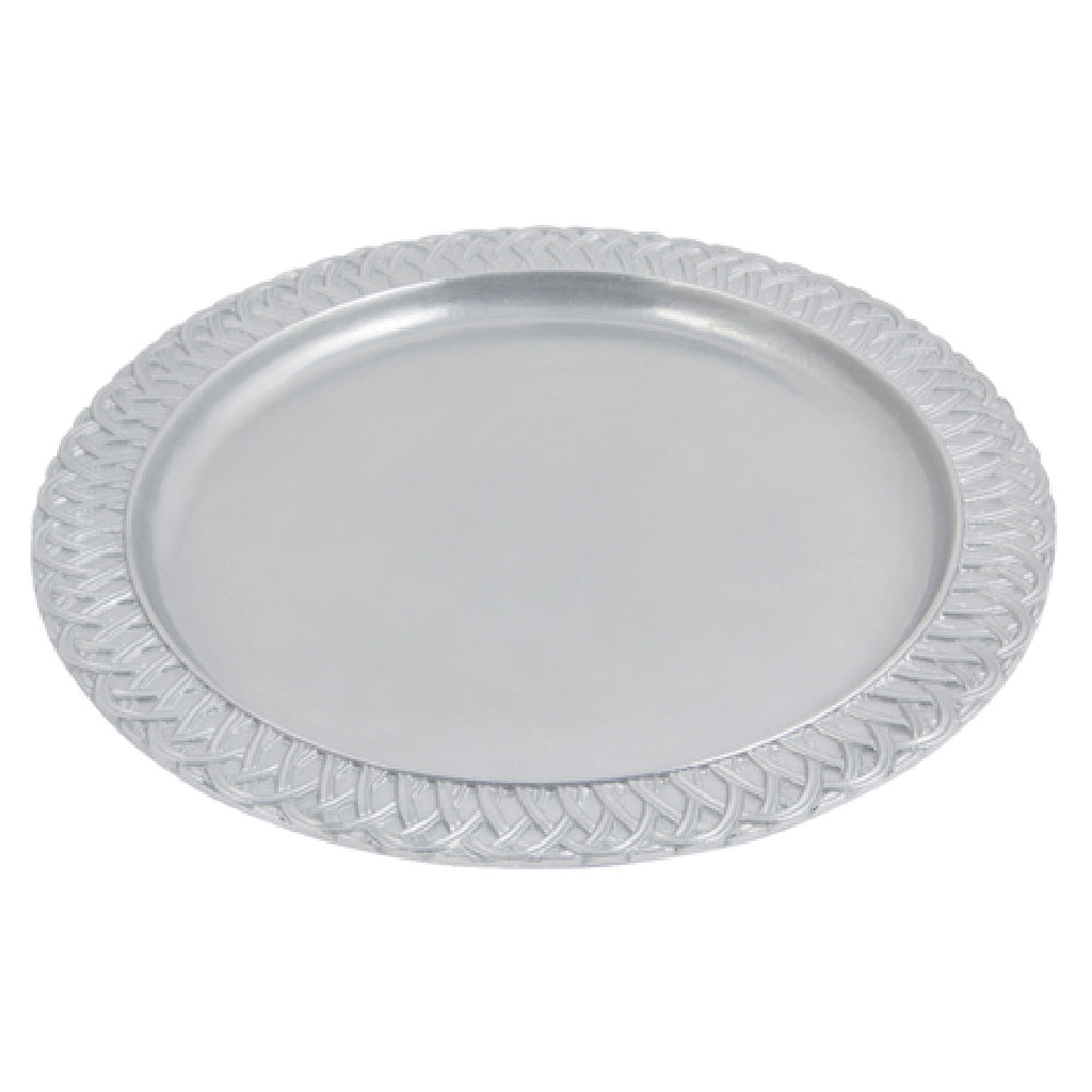 The Bon Chef 2300 Trellis Platter 16"D Round is a distinguished serving piece constructed from aluminum and finished with a Pewter-Glo coating, providing a sophisticated aesthetic that complements various dining settings. Measuring 16 inches in diameter, this round platter is designed for versatility, catering to diverse presentation needs within the food service industry. Its aluminum construction ensures lightweight durability, making it ideal for both busy kitchens and elegant dining experiences. The Pewter-Glo finish not only adds an element of refined elegance but also enhances the platter's resistance to wear and tear, making it suitable for frequent use. Additionally, the Trellis Platter is NSF certified, indicating its compliance with rigorous safety and sanitation standards, thus appealing to professional chefs and restaurateurs who prioritize quality and compliance. This platter serves as a valuable asset for upscale restaurants, catering services, or any culinary establishment seeking to elevate their presentation with a touch of class. Whether utilized for displaying appetizers, entrees, or desserts, the Bon Chef 2300 Trellis Platter 16"D Round stands out as a functional and aesthetically pleasing choice for food presentation. Its combination of design and functionality caters to the needs of various market segments within the hospitality industry.