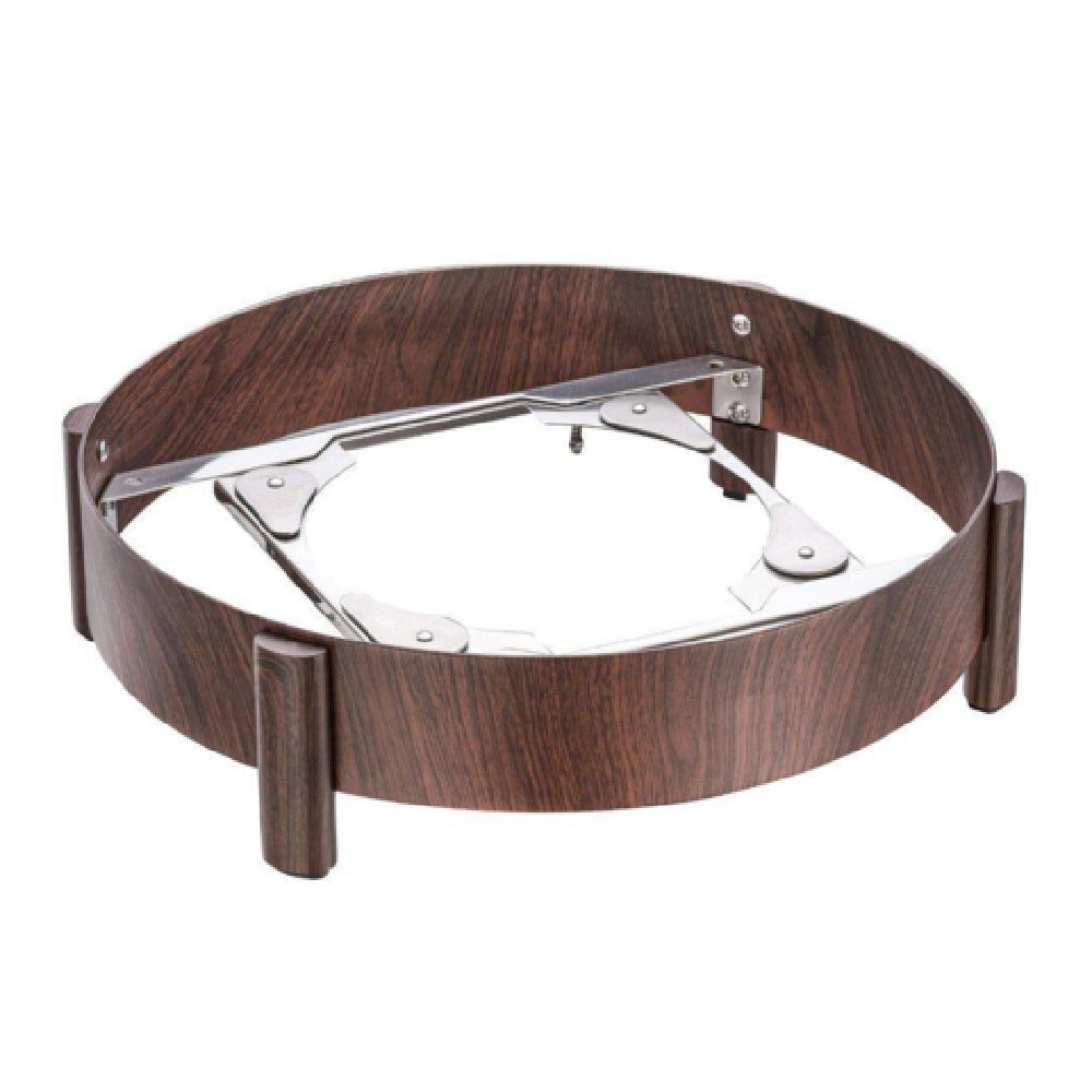 The Bon Chef 23001SI-MAH Magnifico Slim Style Induction Stand For 23001 is a functional and elegantly designed piece, tailored specifically for induction cooking systems that require a sleek, efficient platform. Measuring 17 inches by 17 inches by 3.75 inches, this induction stand is full-size and round, providing a balanced and spacious area for cooking. Its mahogany finish adds a touch of sophistication, making it not only a practical tool but also an attractive addition to any modern kitchen or buffet setting. This stand is ideal for various segments within the food service industry, from catering services to high-end hotel kitchens, thanks to its versatility and aesthetic appeal. Its slim style ensures that it occupies minimal space while maintaining the necessary stability and support for safe and efficient induction cooking. The Bon Chef 23001SI-MAH, with its specific dimensions and premium finish, stands out as a unique value proposition in environments that prioritize both functionality and design. Whether used in bustling restaurant kitchens or upscale catering events, this induction stand enhances the cooking experience by providing a reliable and stylish platform.