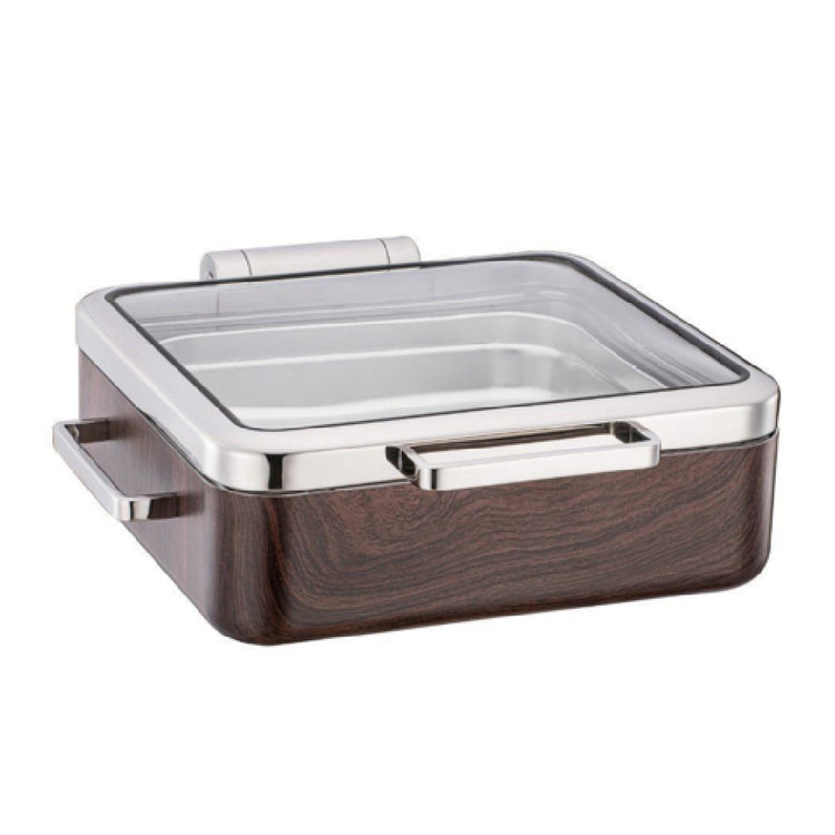 The Bon Chef 23003-MAH Magnifico Induction Chafer is a high-quality culinary tool designed for efficient service and elegant presentation in various food service settings. With dimensions of 18.25 inches in length, 18.3 inches in width, and a height of 6.3 inches, it is a 2/3 size chafer that fits seamlessly into buffet lines or catering setups. The unit boasts a generous capacity of 6.34 quarts, making it suitable for medium-sized serving portions. The chafer is equipped with a glass lid, providing visibility of the contents while maintaining food warmth, and features a hydraulic hinge, which facilitates smooth and stable lid operation. The mahogany finish adds a touch of sophistication, making it an attractive choice for upscale events. Specifically designed for induction heating, this chafer ensures efficient and even heating, aligning with modern energy-saving practices. The Bon Chef 23003-MAH Magnifico Induction Chafer is an ideal solution for hotels, banquet halls, and catering services looking to combine functionality with aesthetic appeal in their food presentation.