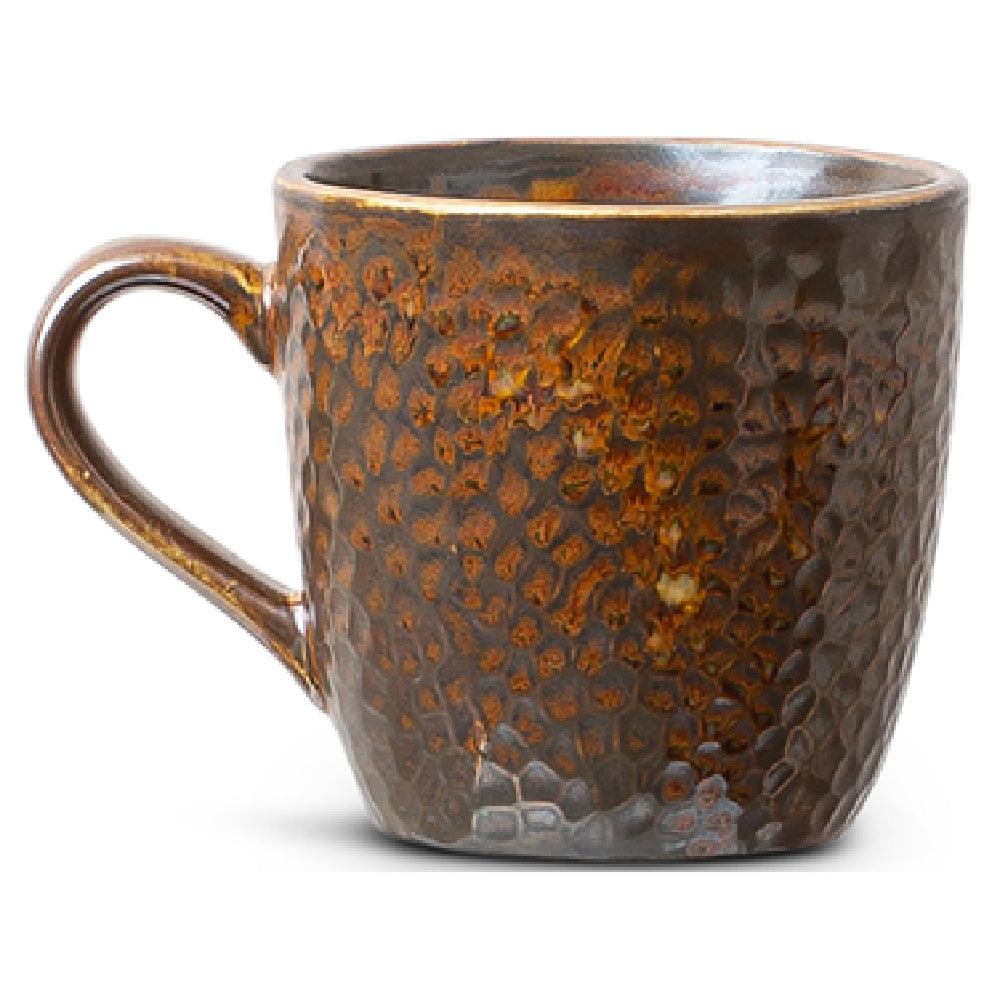 The Bon Chef 2400050P Tavola Mug is a versatile piece of drinkware with an 11 oz. capacity, designed to meet the needs of diverse users within the hospitality and food service industries. Measuring 3-1/4 inches in diameter and 3-1/2 inches in height, this mug offers a practical size for serving a variety of hot beverages. Crafted from high-quality porcelain, it features a reactive glaze that not only adds a touch of rustic elegance with its Coppa and rustic copper finish but also ensures durability. This mug is engineered to be microwave, dishwasher, and oven safe up to 350°F, making it an excellent choice for both hot beverage service and culinary applications that require heat retention and versatility. With a one-year chip warranty, it provides confidence in its long-lasting use. The Bon Chef Tavola Mug is packed as 12 each per case, catering to bulk purchasing needs for commercial settings such as cafes, restaurants, and hotels where consistent service and aesthetic appeal are paramount. Its unique combination of practical design, aesthetic appeal, and robust performance makes it a valuable addition to any professional kitchen or dining setting.