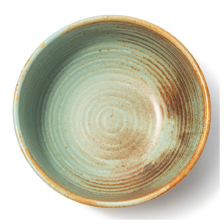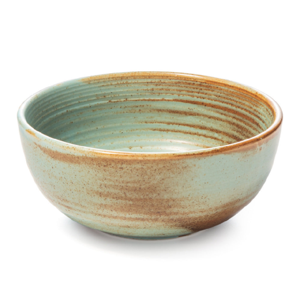 The Bon Chef 2600000P Lago Cereal Bowl is an expertly crafted piece of dinnerware with a 20 oz. capacity, ideal for serving cereal or soups in both domestic and commercial settings. This bowl features a diameter of 5.75 inches and a height of 3.36 inches, offering a generous volume for a variety of culinary applications. It is characterized by its round shape and a distinctive reactive glaze, which enhances its aesthetic appeal while ensuring durability. Made of high-quality ceramic, this bowl is designed in a sophisticated Teal/Copper color, adding a touch of elegance to any dining experience. An added unique value of this product is its one-year chip warranty, which speaks to its resilience and the manufacturer's confidence in its durability. The Bon Chef 2600000P Lago Cereal Bowl is packed 12 each per case, making it an efficient choice for restaurants, hotels, and catering services requiring bulk purchasing. Its combination of style, functionality, and durability makes it a versatile addition to any tableware collection, appealing to both residential users and professionals in the hospitality industry.