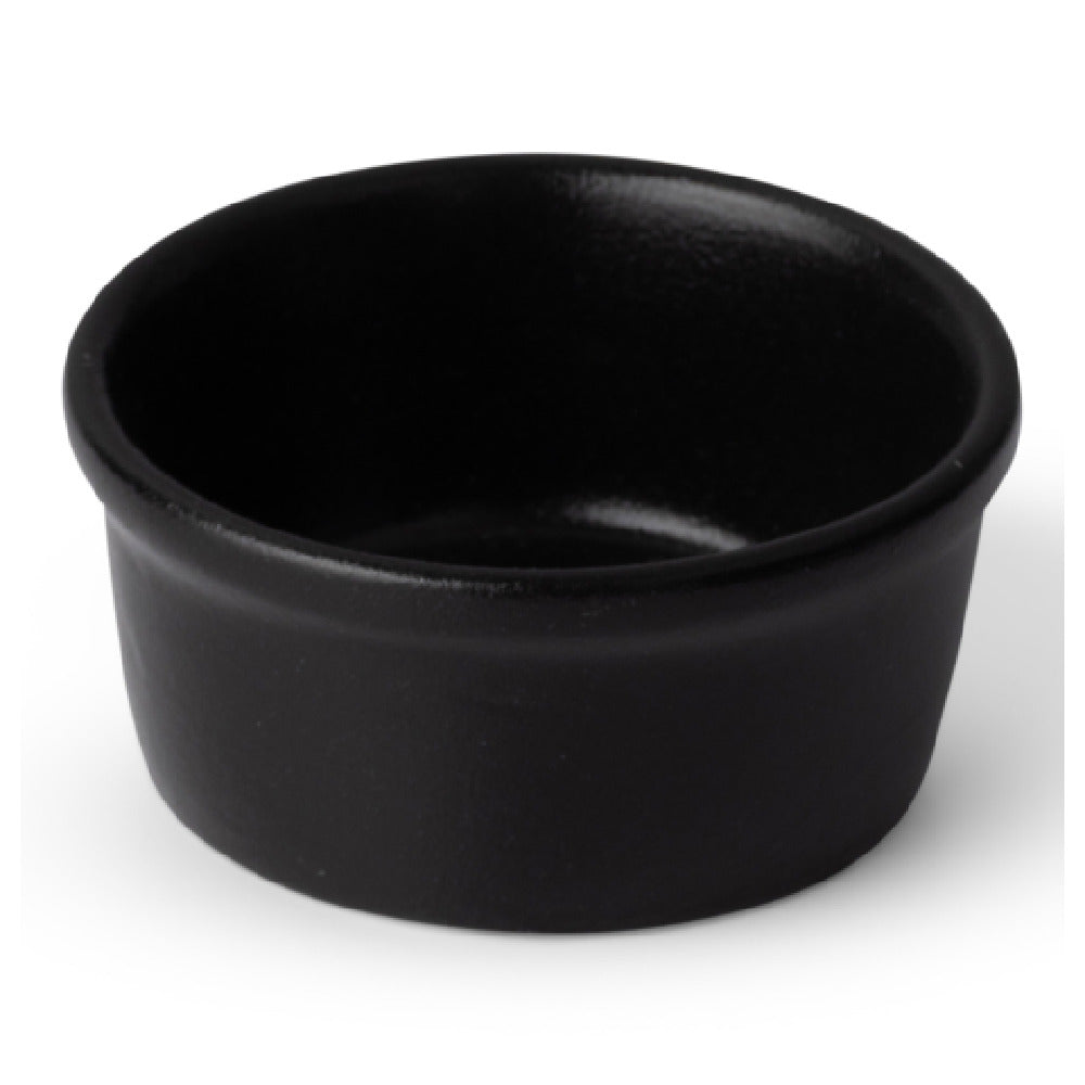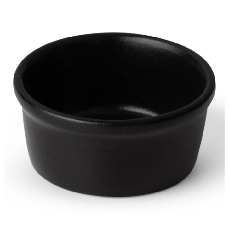 The Bon Chef 2700060P Tavola Ramekin is a specialized dish designed to meet the needs of various market segments within the food service industry. With a capacity of 2 oz and dimensions of 2.3 inches in diameter and 1.2 inches in height, this ramekin is perfectly sized for presenting individual portions. Crafted from a fully vitrified alumina body, this product ensures durability and resistance to impact, making it suitable for high-traffic environments. The ramekin is finished in a sophisticated Midnight Matte Black, offering a contemporary aesthetic that can elevate the presentation of culinary creations. Notably versatile, it is safe for use in microwaves, dishwashers, and ovens, enhancing its functionality in busy kitchens. Additionally, it comes with a 1-year chip warranty, providing assurance of its quality and craftsmanship. The Bon Chef 2700060P is packaged with 48 ramekins per case, making it an efficient choice for large-scale operations such as restaurants, hotels, and catering services that demand both style and practicality. This product represents an ideal solution for those seeking reliable, stylish, and versatile tableware that can withstand the rigors of everyday use while maintaining an elegant appearance.
