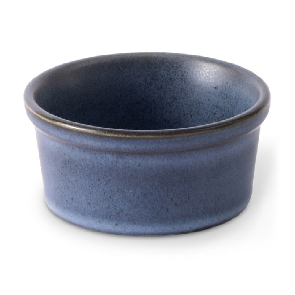 The Bon Chef 2800061P Tavola Ramekin 4 Oz. Round is a versatile and essential piece for any dining establishment, whether it's a bustling restaurant or a cozy café. This ramekin, with a capacity of 4 ounces, is crafted to meet the high demands of the food service industry. Made from fully vitrified porcelain, it ensures durability and resistance to thermal shock, making it a reliable choice for serving sauces, condiments, and small desserts. The ramekin's design includes a round shape and a reactive blue matte finish, adding a touch of elegance to any table setting. It is microwave, dishwasher, and oven safe up to 350°F, providing convenience and efficiency in fast-paced kitchen environments. This product comes with a 1-year chip warranty, underscoring its high-quality construction and longevity. With packing of 48 pieces per case, it offers excellent value for bulk purchasing. The Bon Chef 2800061P Tavola Ramekin is part of the Venezia collection, which is known for its stylish and functional dinnerware solutions. Its robust design and aesthetic appeal make it suitable for diverse market segments, from high-end dining to casual eateries, ensuring it meets the varied demands of the hospitality industry.